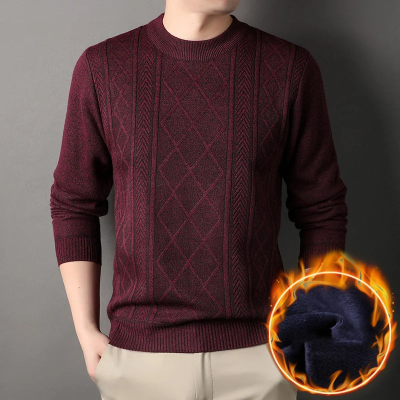 2024 Winter Plush Men's Knitted Sweater Round Neck Thick Bottom Warm Solid Color Versatile Casual Inner Layer Sweater