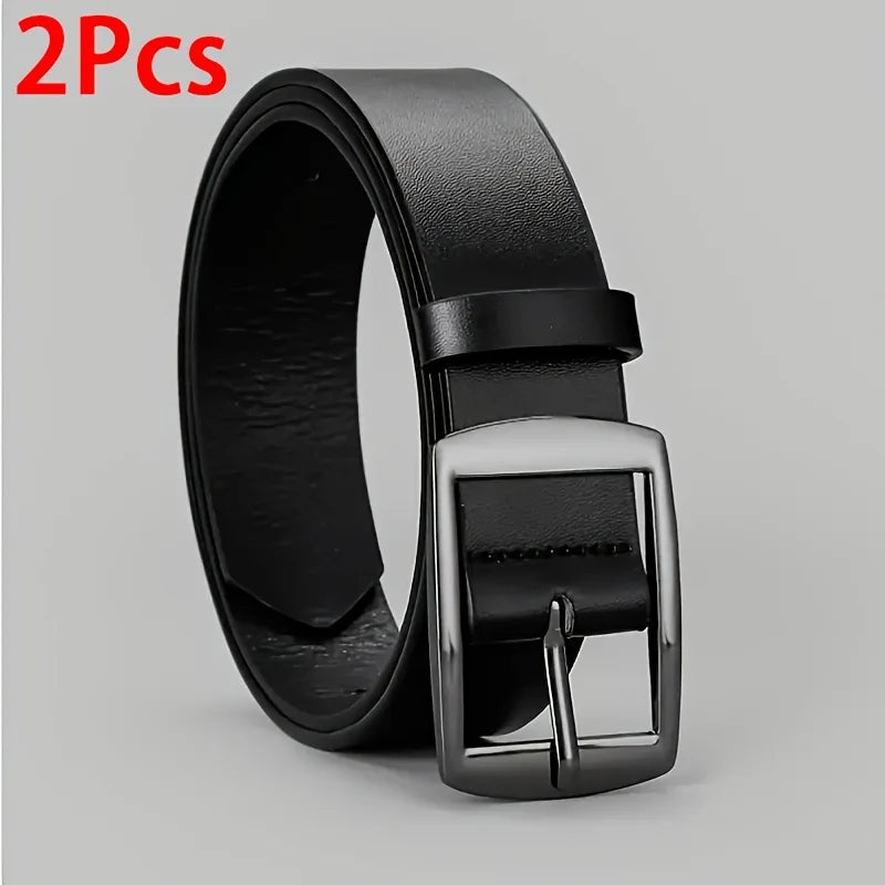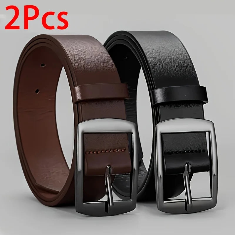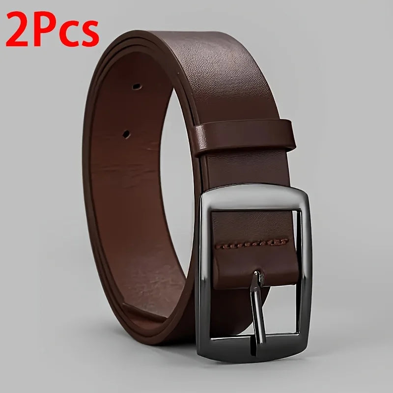 2pc Fashion Luxury Belt for Men PU Leather Belt Metal Pin Buckle Belt High Quality Designer Waist Strap Belt for Jeans Plus Size