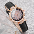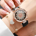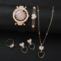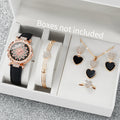 6PCS/Set Women Flower Rhinestone Dial Wristwatch Ladies Fashion Leather Strap Watch With Heart Diamond Jewelry Set(Without Box)