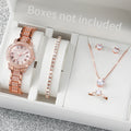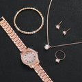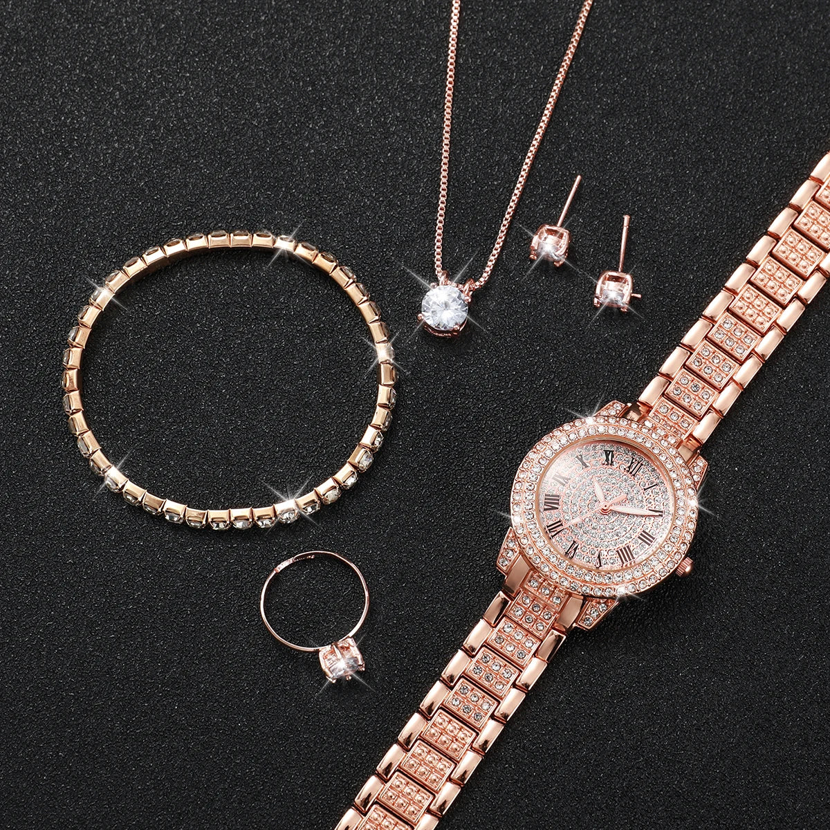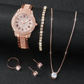 6PCS/Set Women's Watch Fashion Full Diamond Steel Band Quartz Watches Jewelry Set(Without Box)