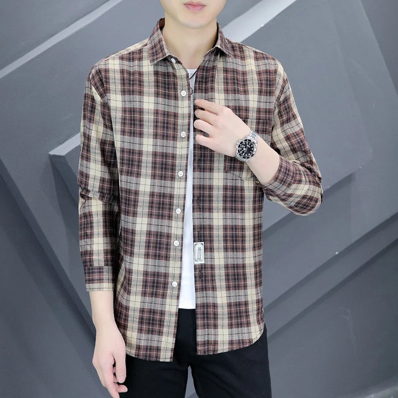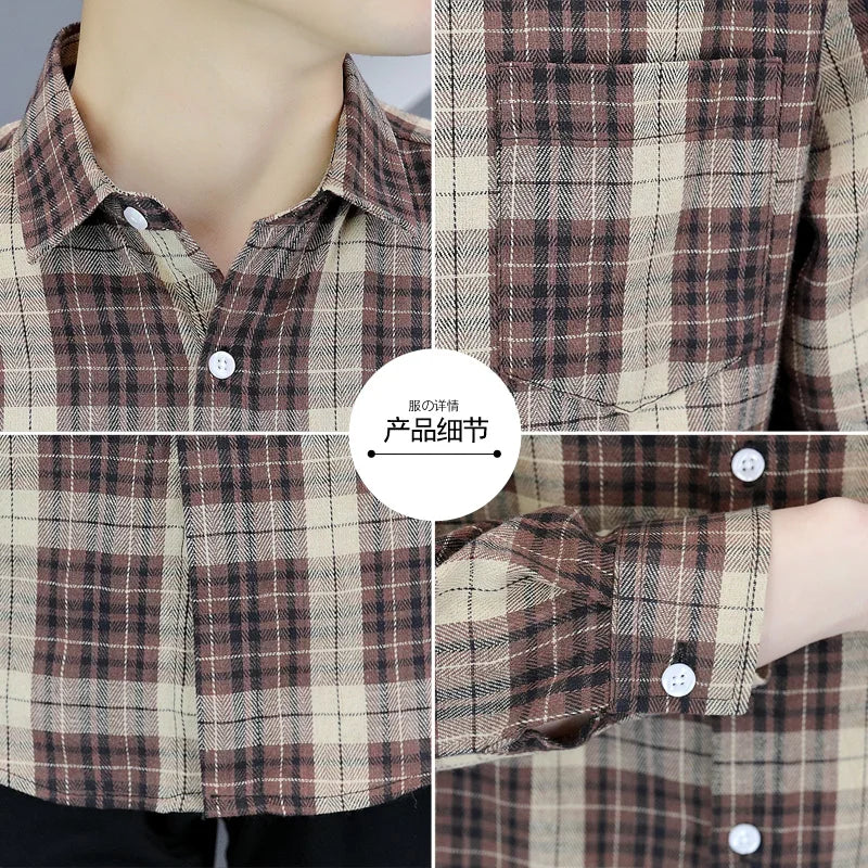 High-quality men's fashionable, stylish, versatile business boutique, autumn trendy casual, checked shirt for teenagers, men
