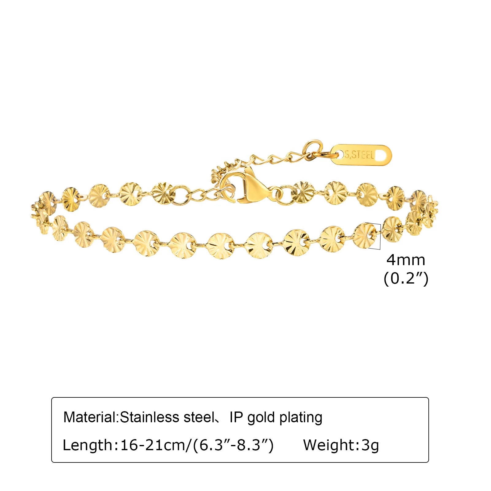 Texture Discs Bracelet Adjustable for Women, Stainless Steel Gold Plated Boho Minimalist Stacking Layered Jewelry