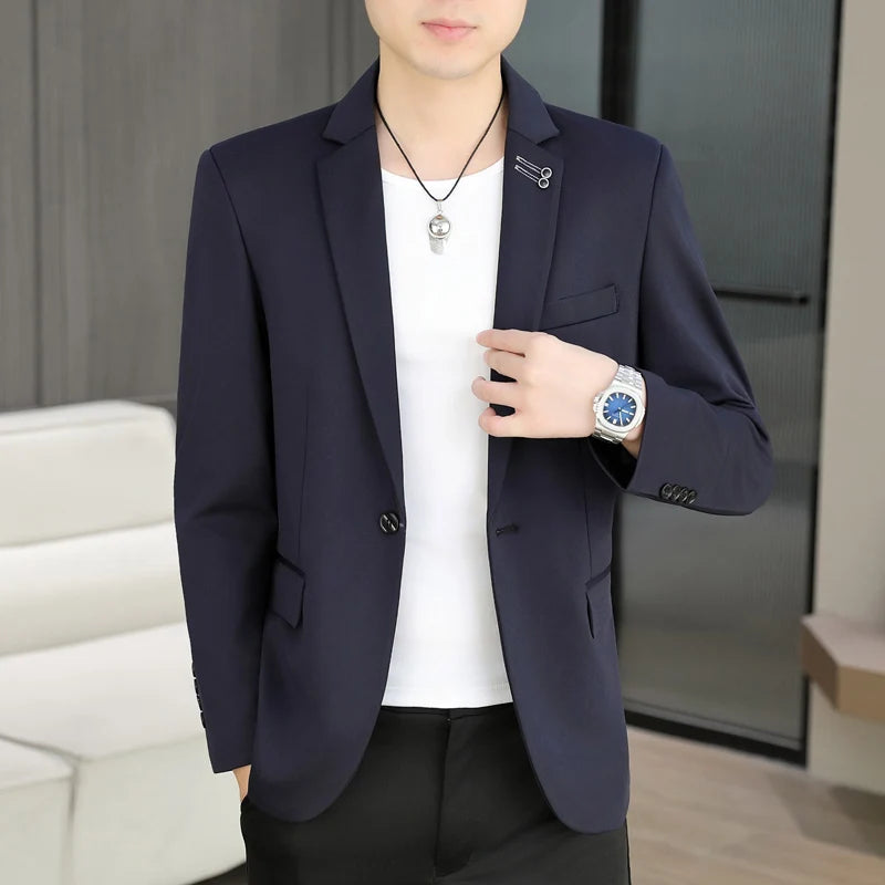 The new men's suit is a slimming and trendy solid color single Western-Korean style fashionable jacket for men