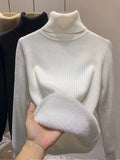 Thicken Plush Velvet Lined Knit Sweater Women Winter Slim Casual Warm Pullover Tops New Turtleneck Long Sleeve Knitwear Jumper