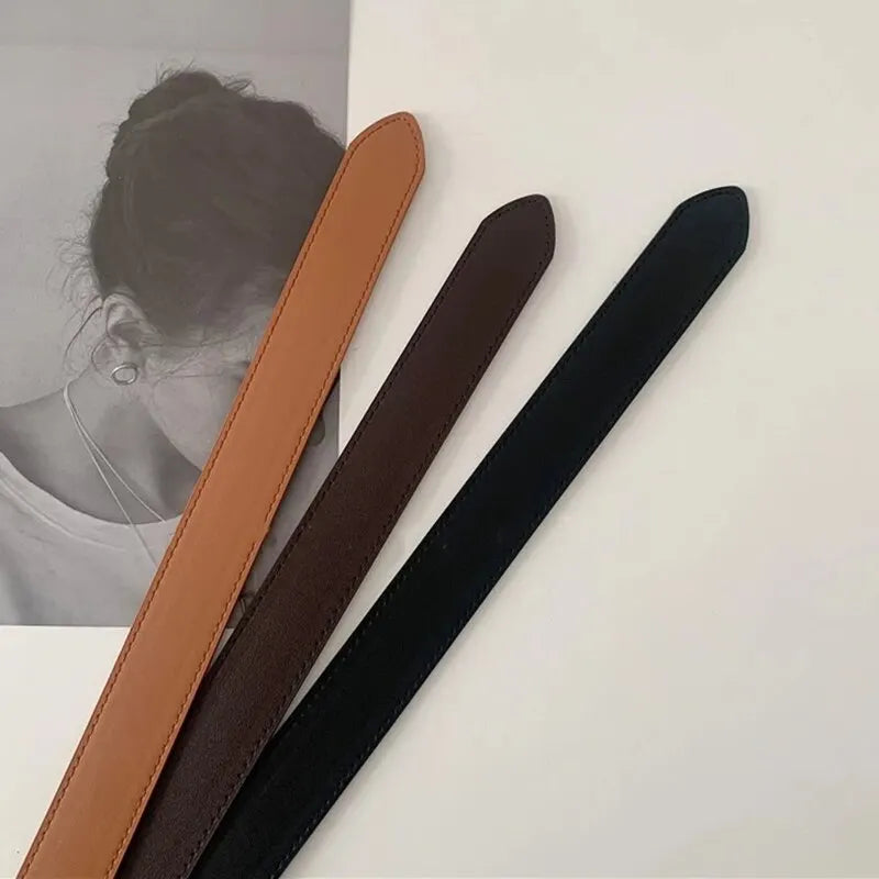 Unisex Free Size PU Leather Belt For Women No-Hole Buckle Luxury Designer Jeans Waist Belt Men Fashion Non-Porous Soft Waistband