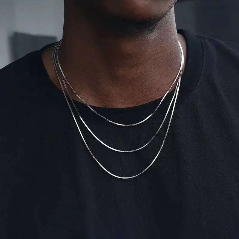 1.2mm Stainless Steel Square Snake Bone Chain Necklace Hip Hop Men Clavicle Chain Necklace Fashion Street Jewelry Accessories