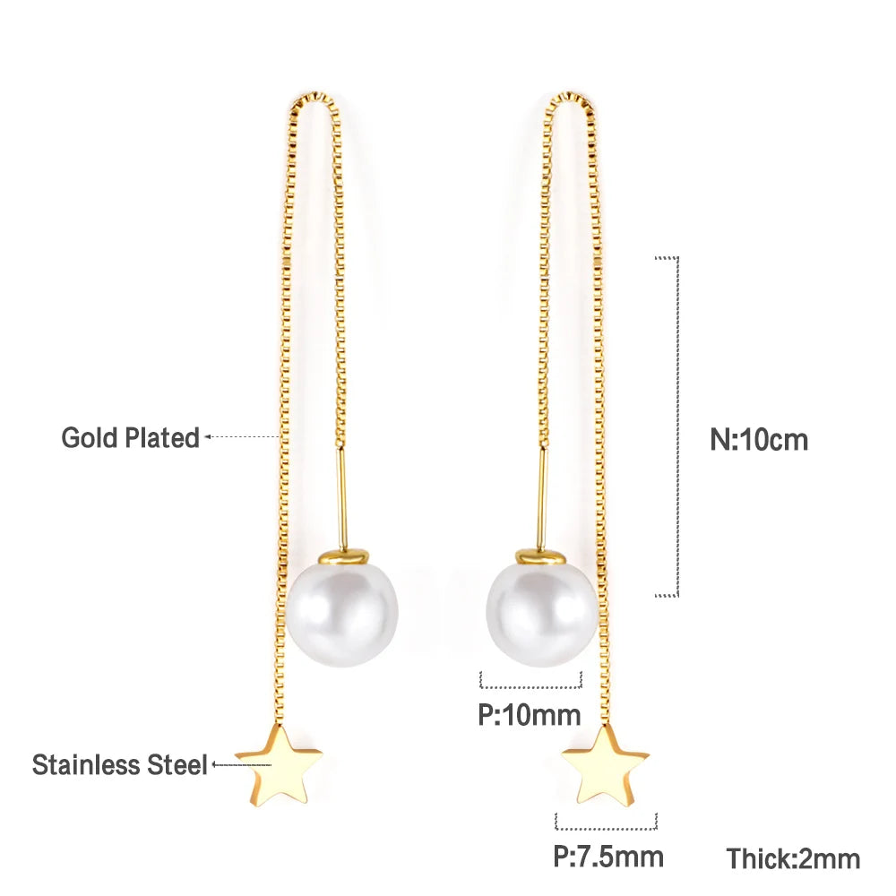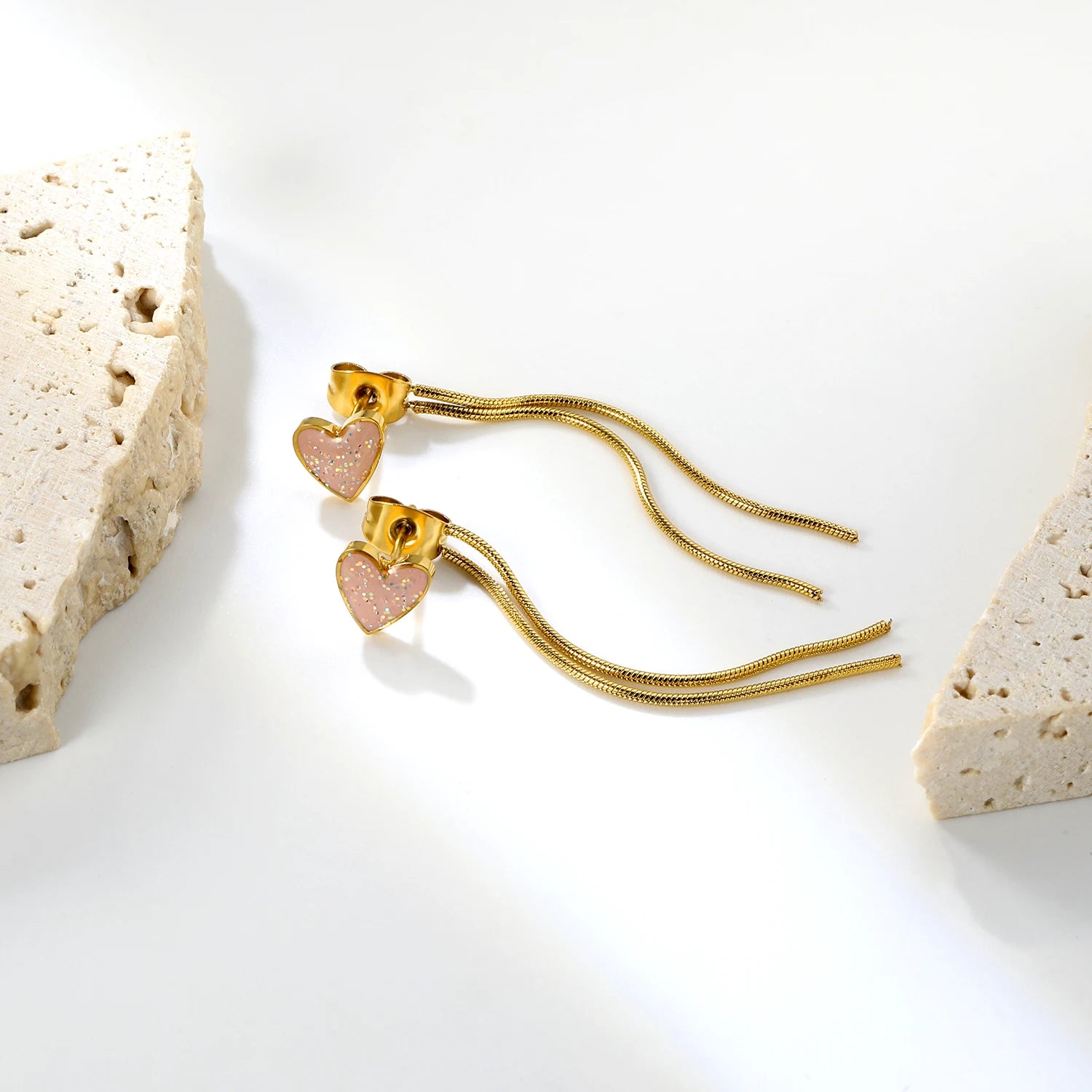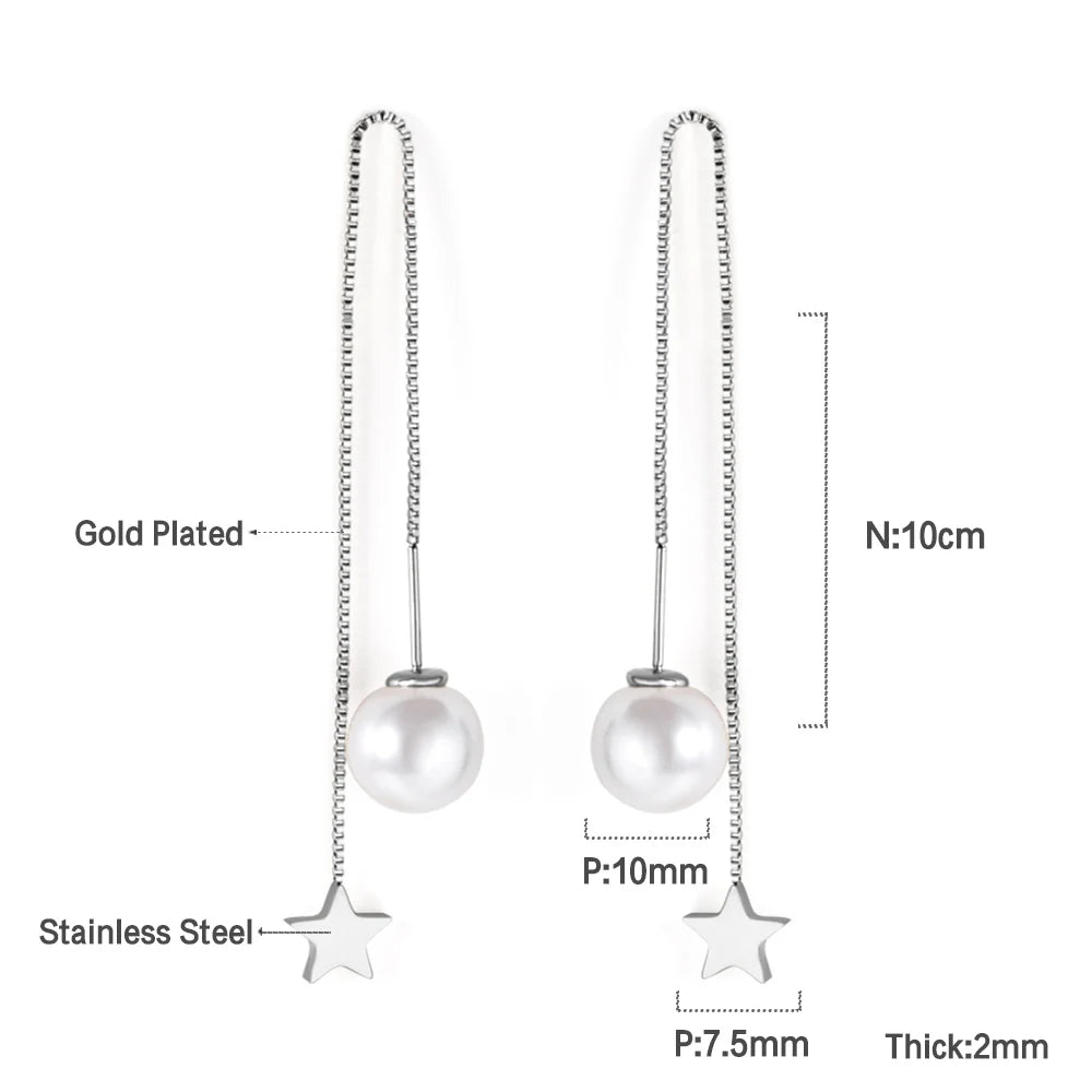 1 Pair of Stainless Steel Freshwater Pearl Pendant Earrings Love Tassels Girl Gentle Temperament Daily Wear Jewelry Fashion