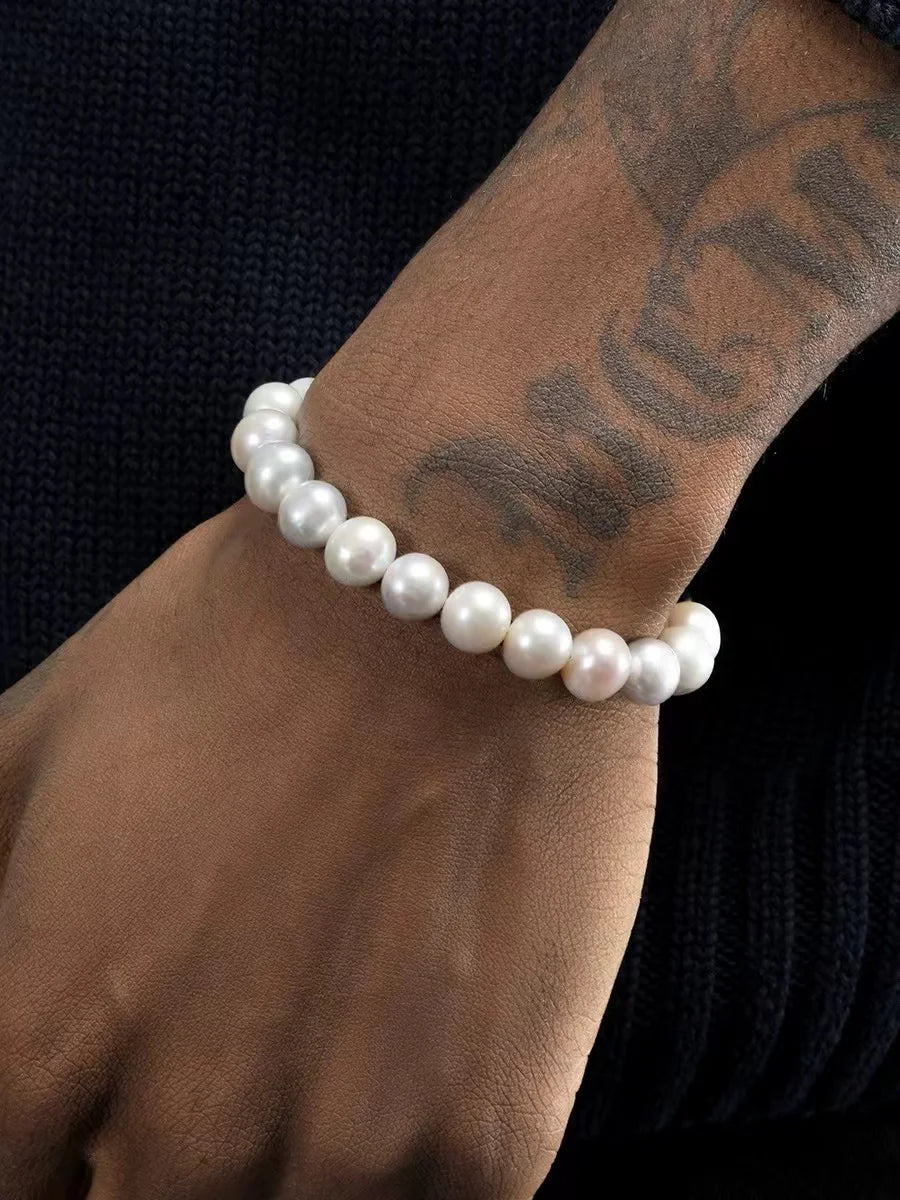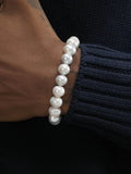 10mm Elastic Imitation Pearl Bracelet for Men Simple White Acrylic Bracelet For Women Hip Hop Fashion Jewelry Accessories