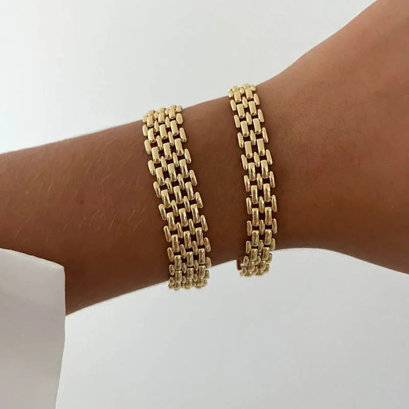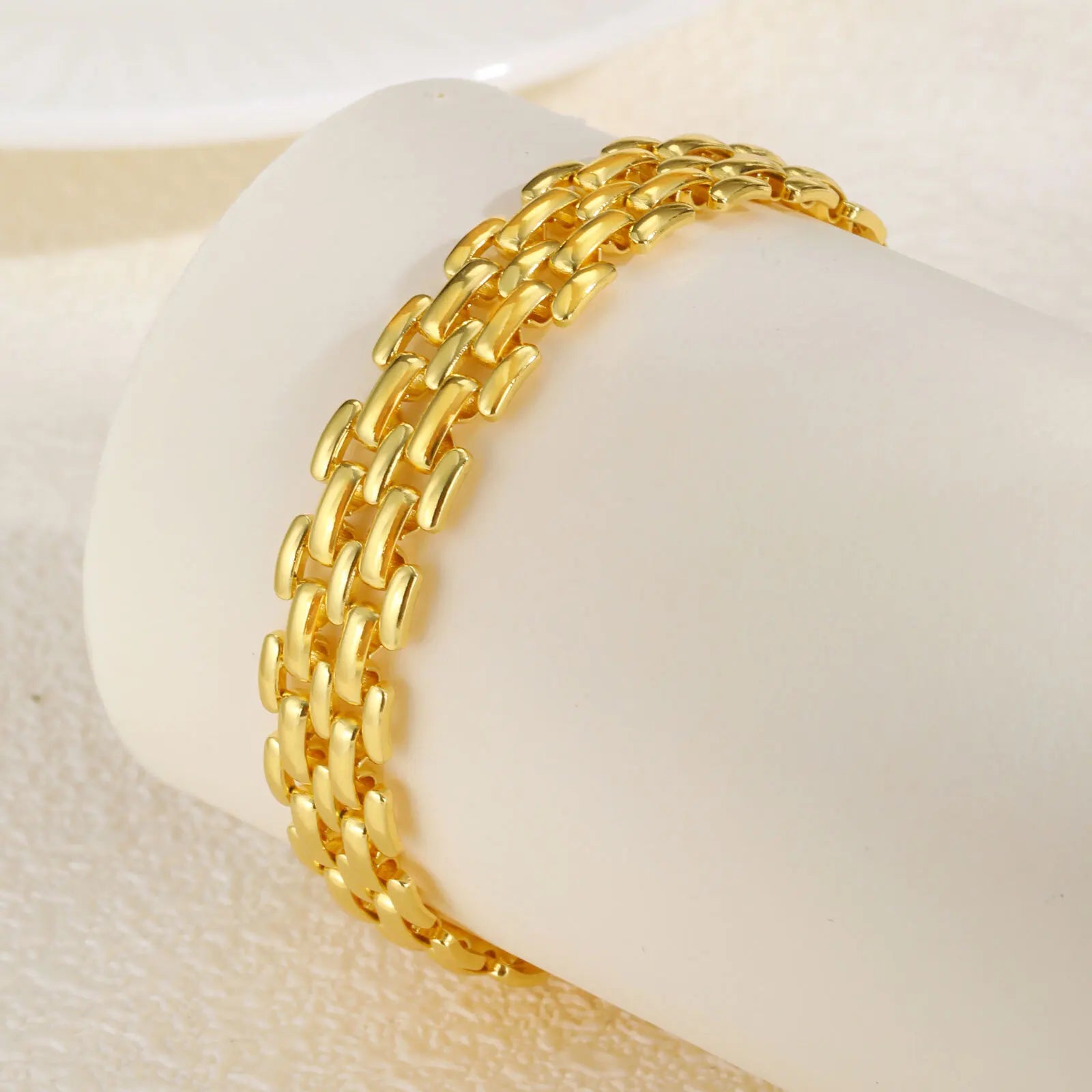 18k Gold Plated Mesh Link Bracelet for Women, Clavicle Chain Wrist Bracelet Polish Jewelry