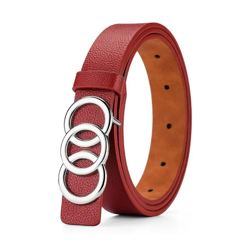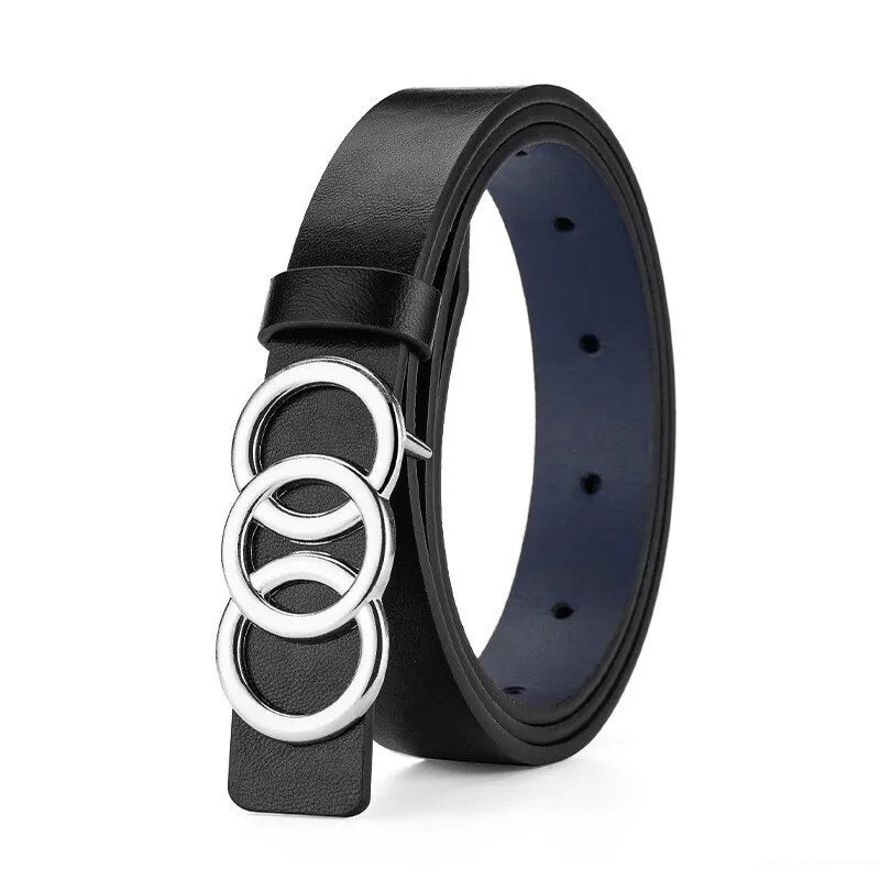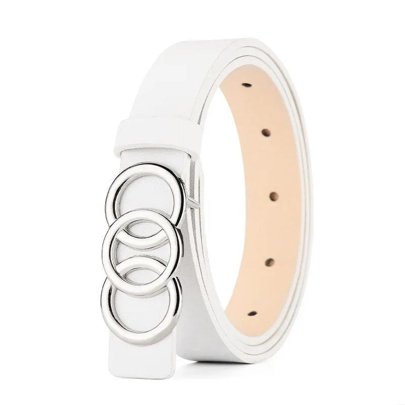 1pc New Women's Belt Fashion Silver Three Circle Buckle Belt Versatile Personalized PU Leather Belt Paired With Jeans Lady Belt