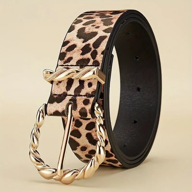 1pc New Women's Belt Retro Leopard Pattern Belt Trend Gold Alloy Buckle Belt PU Leather Belt Paired with Jeans Belt Lady Belt