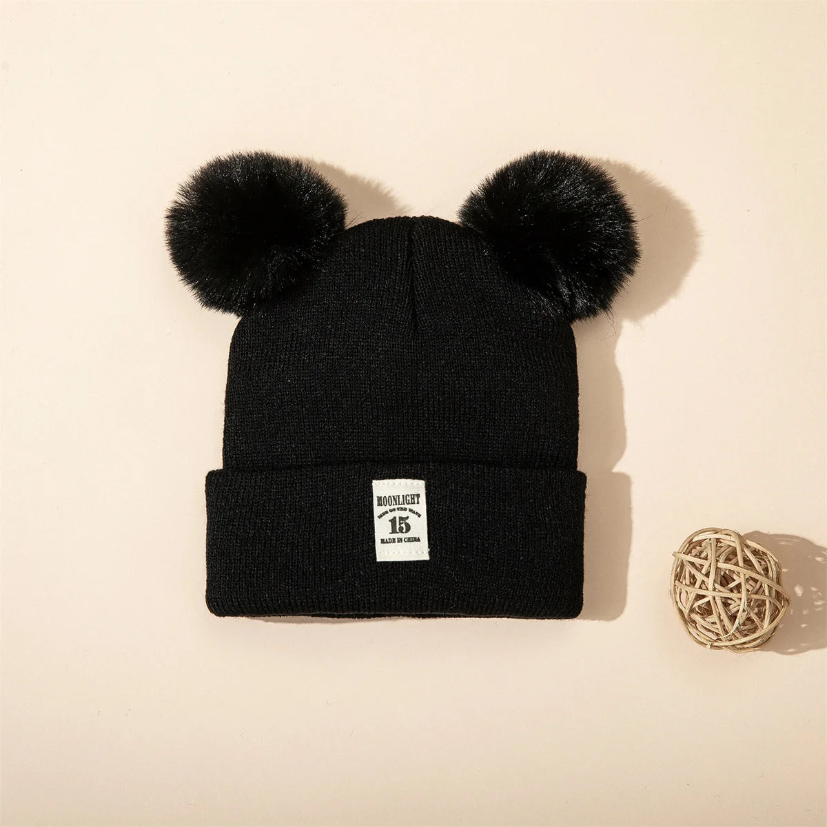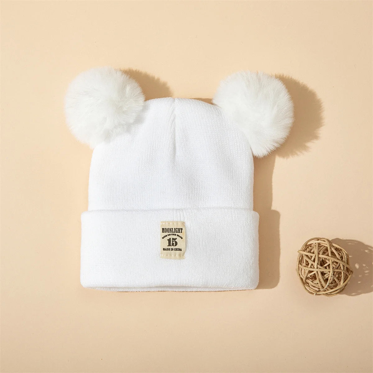 1PC Solid color knit hat Newborn baby hat Plush ball Cute winter hat boys girls skullcap