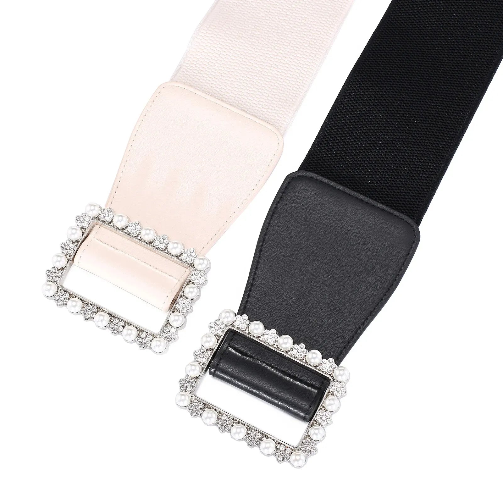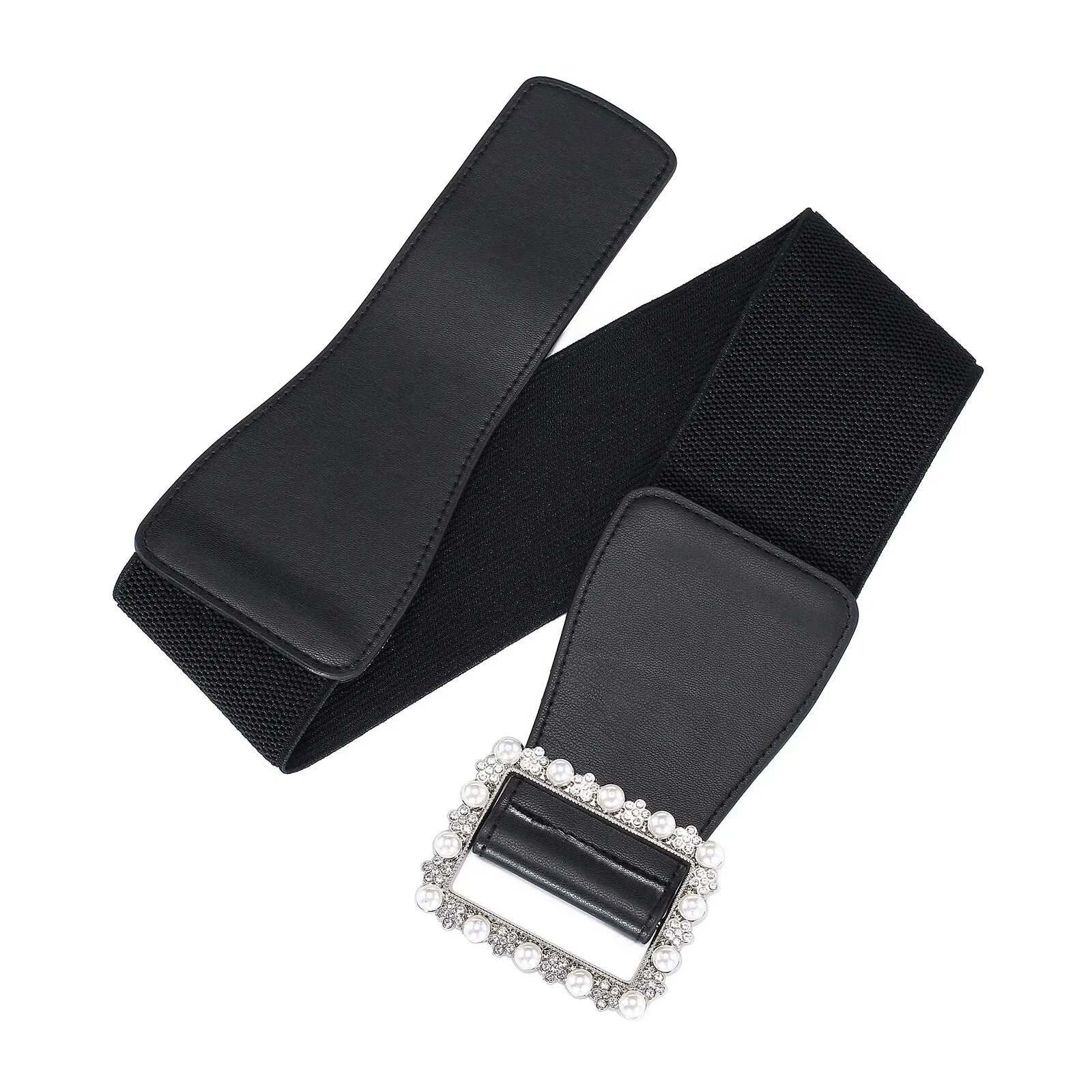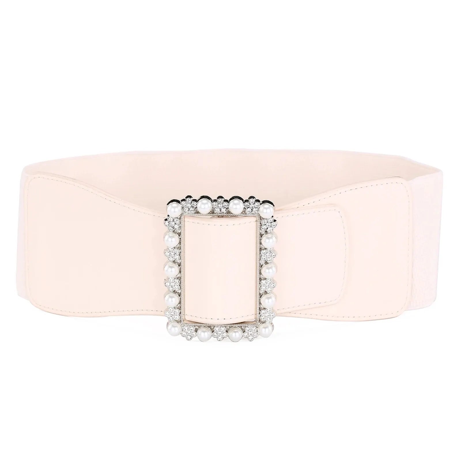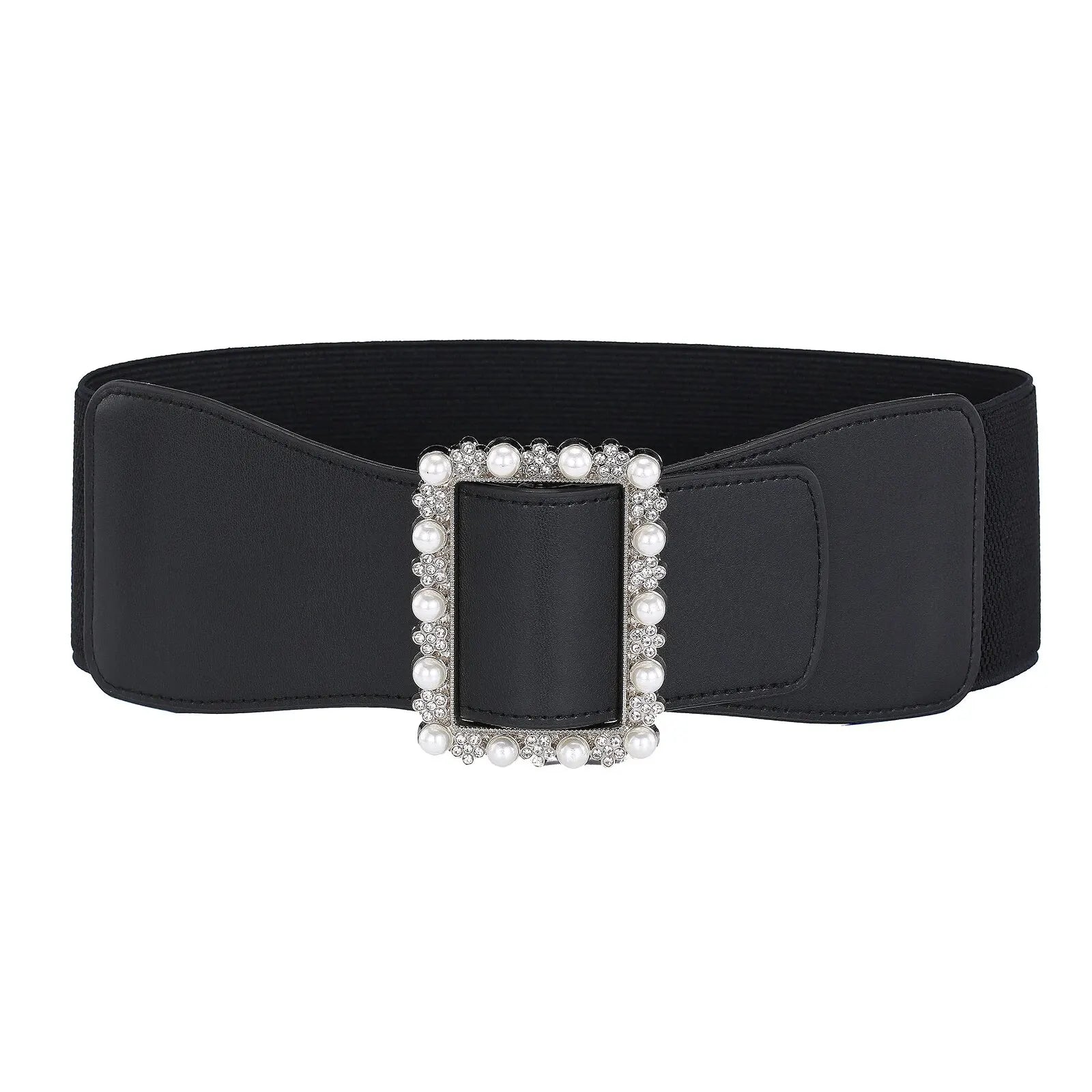 1pc Women's Belt Fashionable Pearl Buckle Shaping Belt Versatile Elastic Elastic Belt Pu Leather Wide Waist Seal With Dress Coat