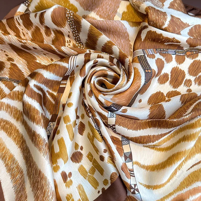 2023 Luxury Leopard Print Silk Square Scarf Women Soft Satin Hairbands Neckerchief Head Hijab Headband Foulard Bag Ribbon Office
