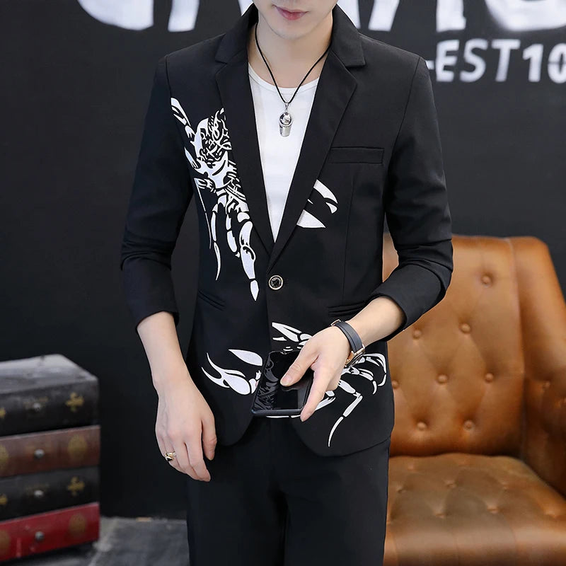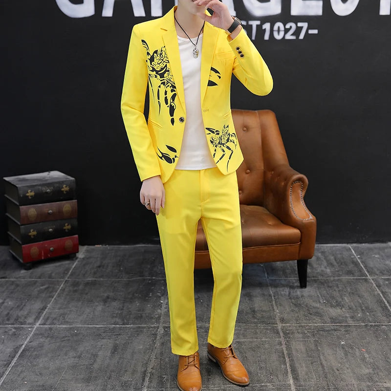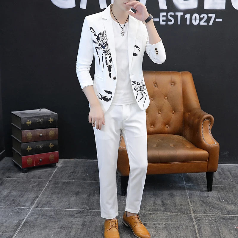2024 Autumn Fashion Slim Fit Korean White Suit Two-Piece Set Casual Handsome Ruffian Style Suit plus Trousers