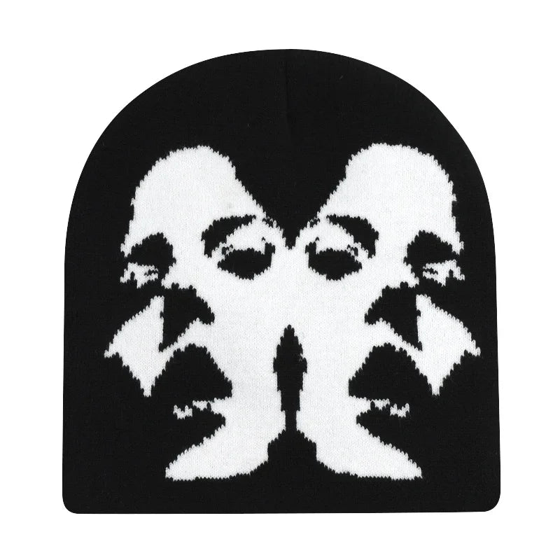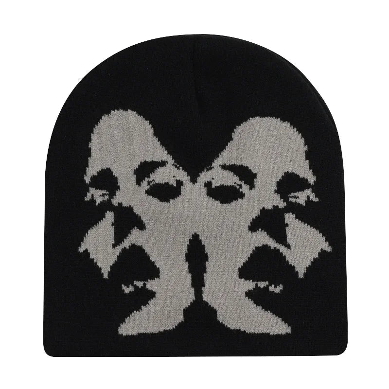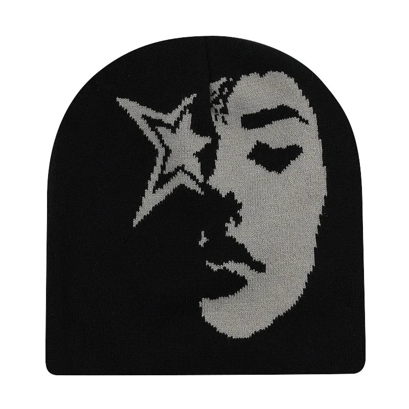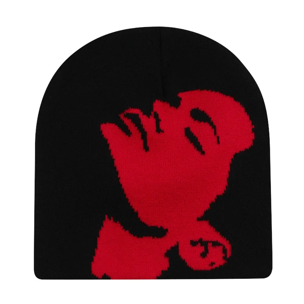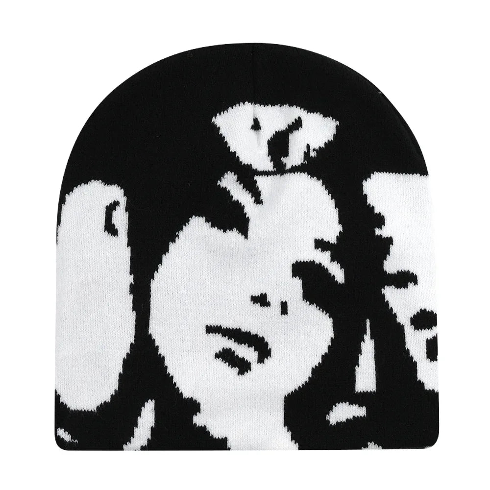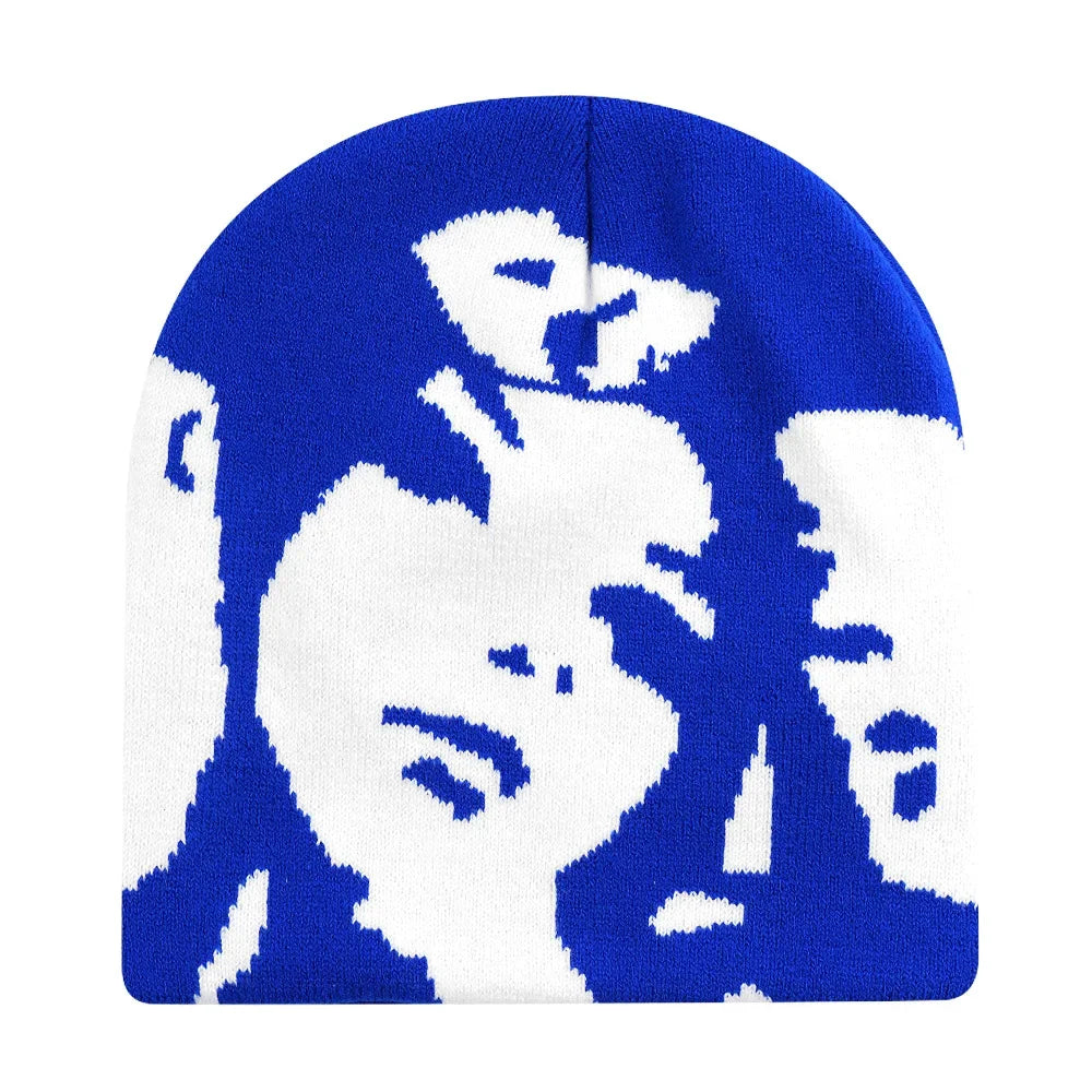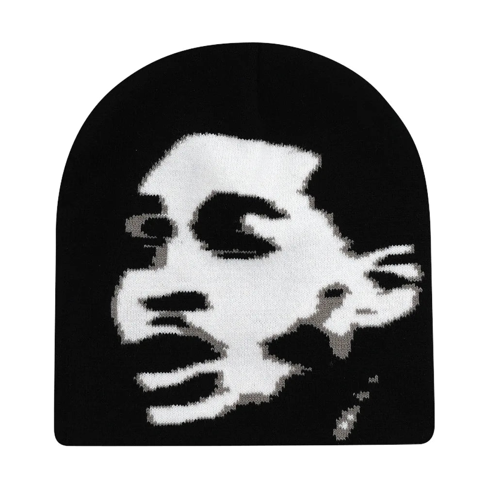 2024 Fashion Face Pattern Beanies Hip Hop Y2K Street Hat Women Men Dance Fire Hell Burn Winter Warm Knitted Bonnet Skiing Hat