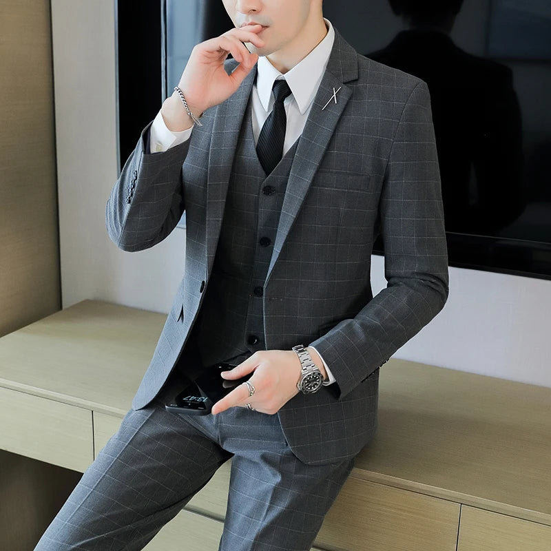 2024 Plaid Three-Piece Suit Set - High-Quality Business Fashion Vest & Trousers Wedding Casual Handsome Outfit