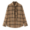 2025 autumn new women's casual fashion temperament loose versatile striped tie lapel long-sleeved shirt top