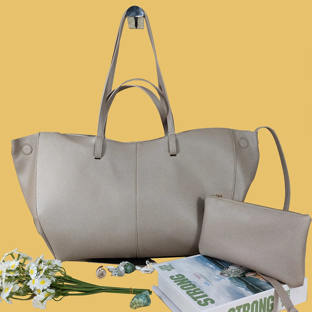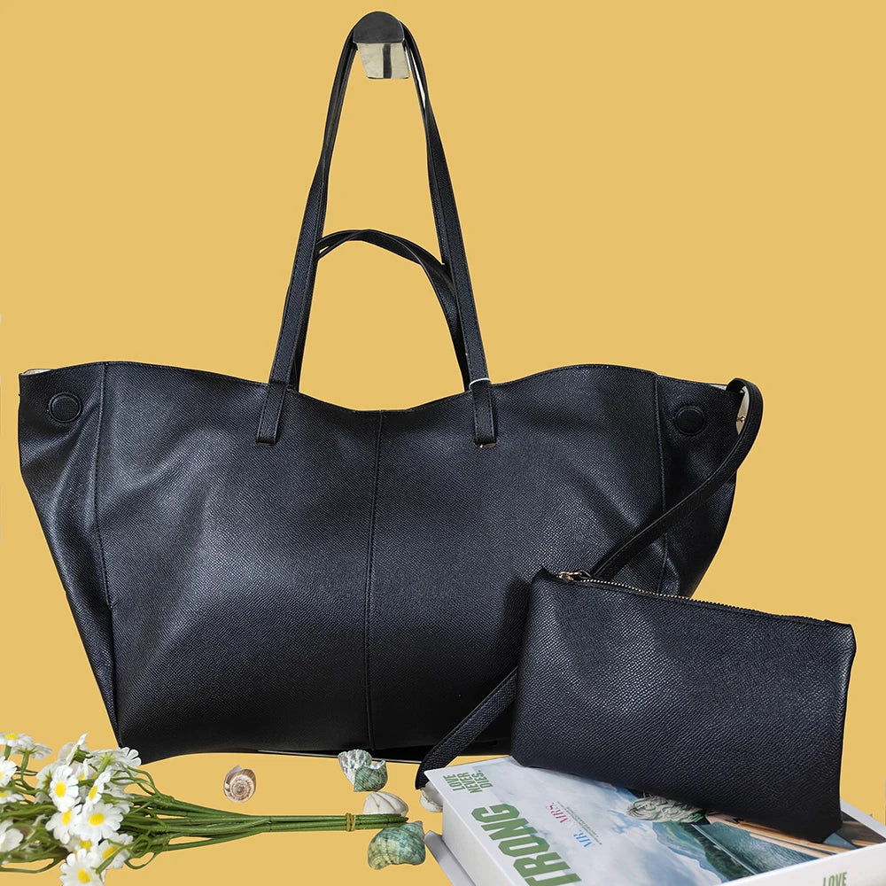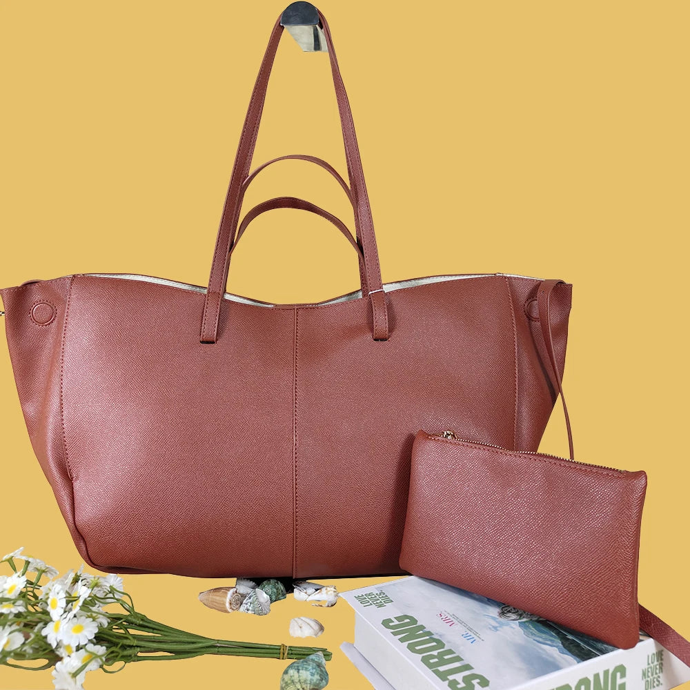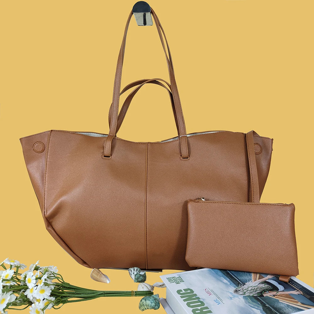 2025 fashionable women's shoulder bag large capacity tote bag simple commuting must-have shoulder bag free small wallet