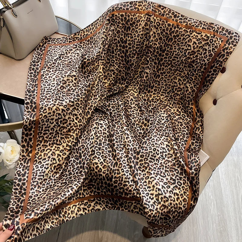 2025 New Leopard Print Hijab Scarf Women 90cn Square Fashion Headband Silk Smooth Scarves Bandana Neckerhicef Shawl Wraps