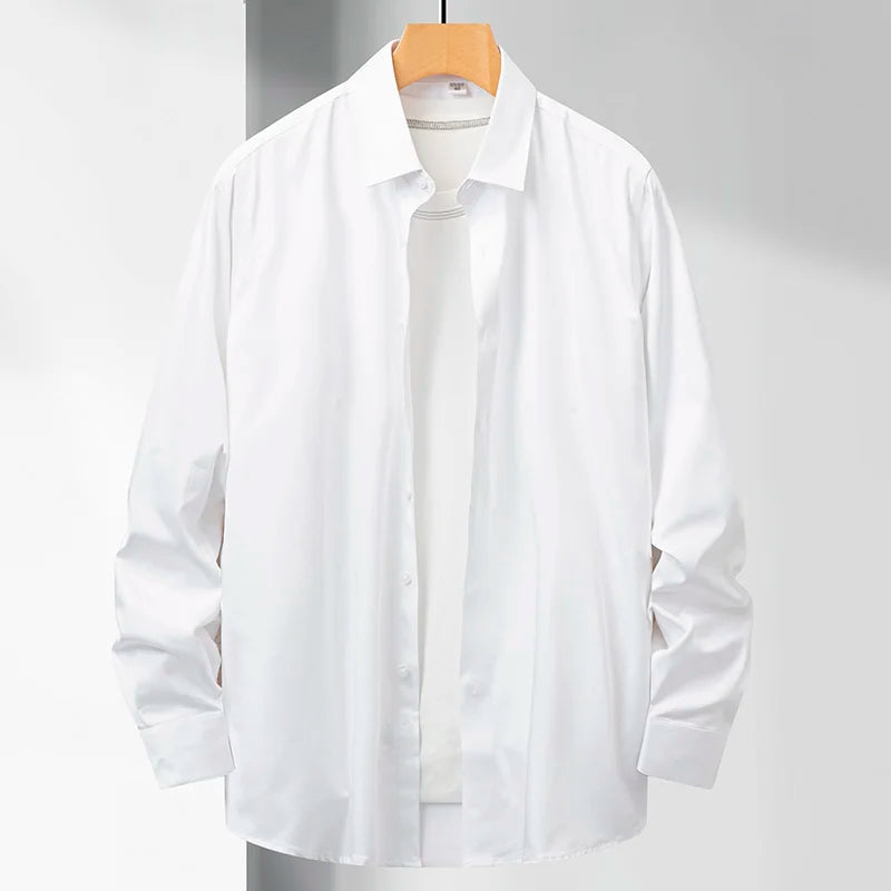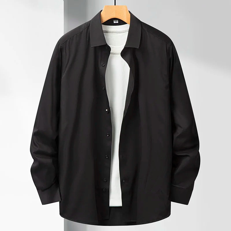 38-50 size no-iron business casual men's long-sleeved shirt, bamboo fiber no-pocket large size solid color shirt