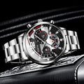 3PCS/Set Men Business Watches Fashion Silver Steel Band Male Quartz Watch Bracelet Necklace Set(Without Box)