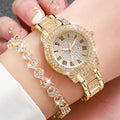 6PCS/Set Fashion Full Diamond Women's Quartz Watch Steel Band Analog Watches Rhinestone Heart Bracelets(Without Box)