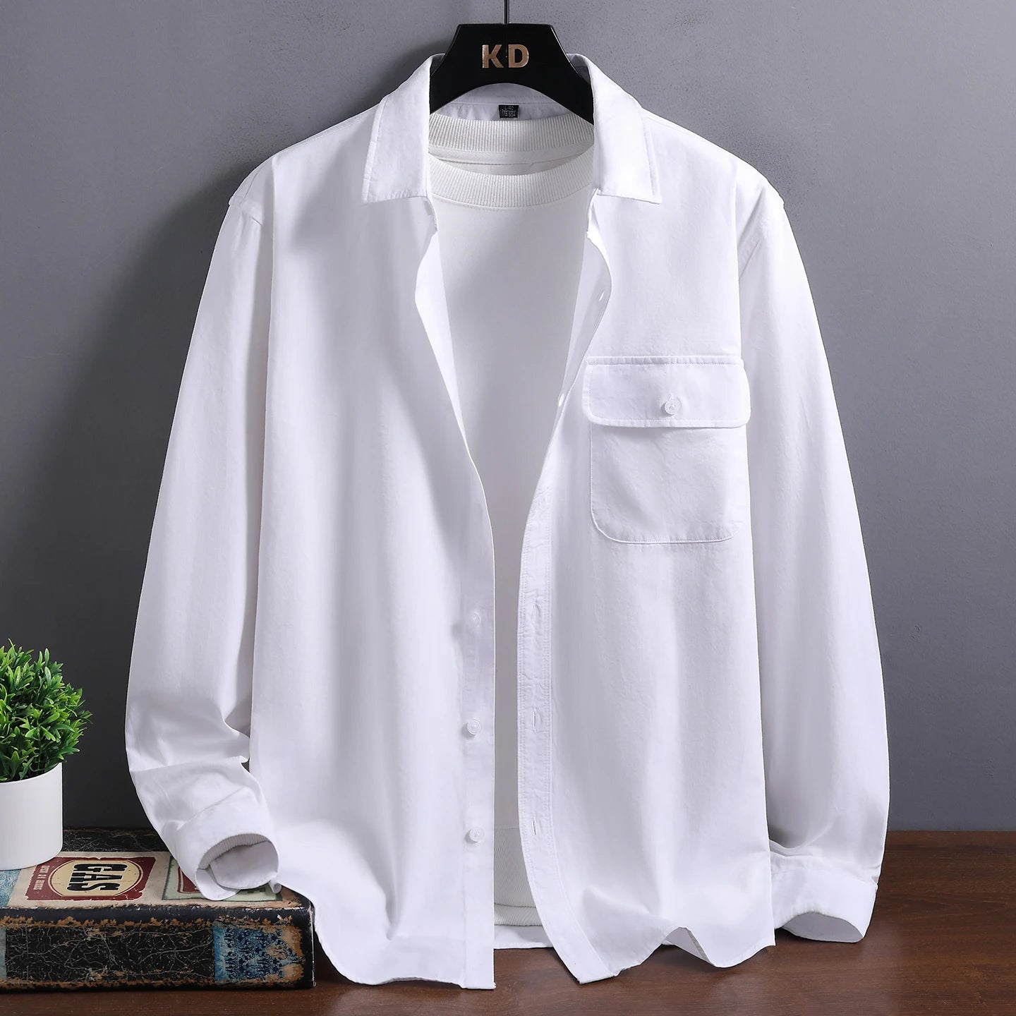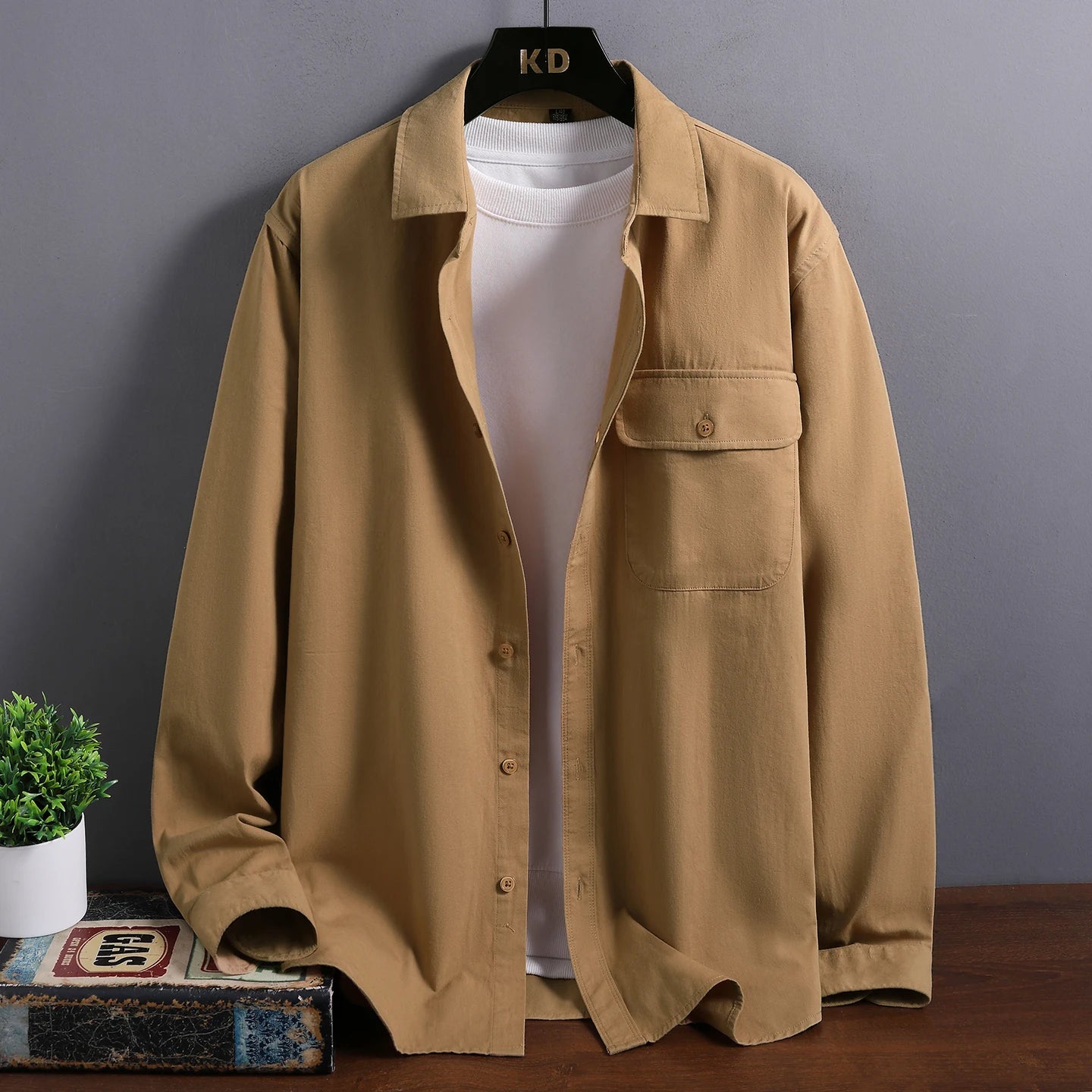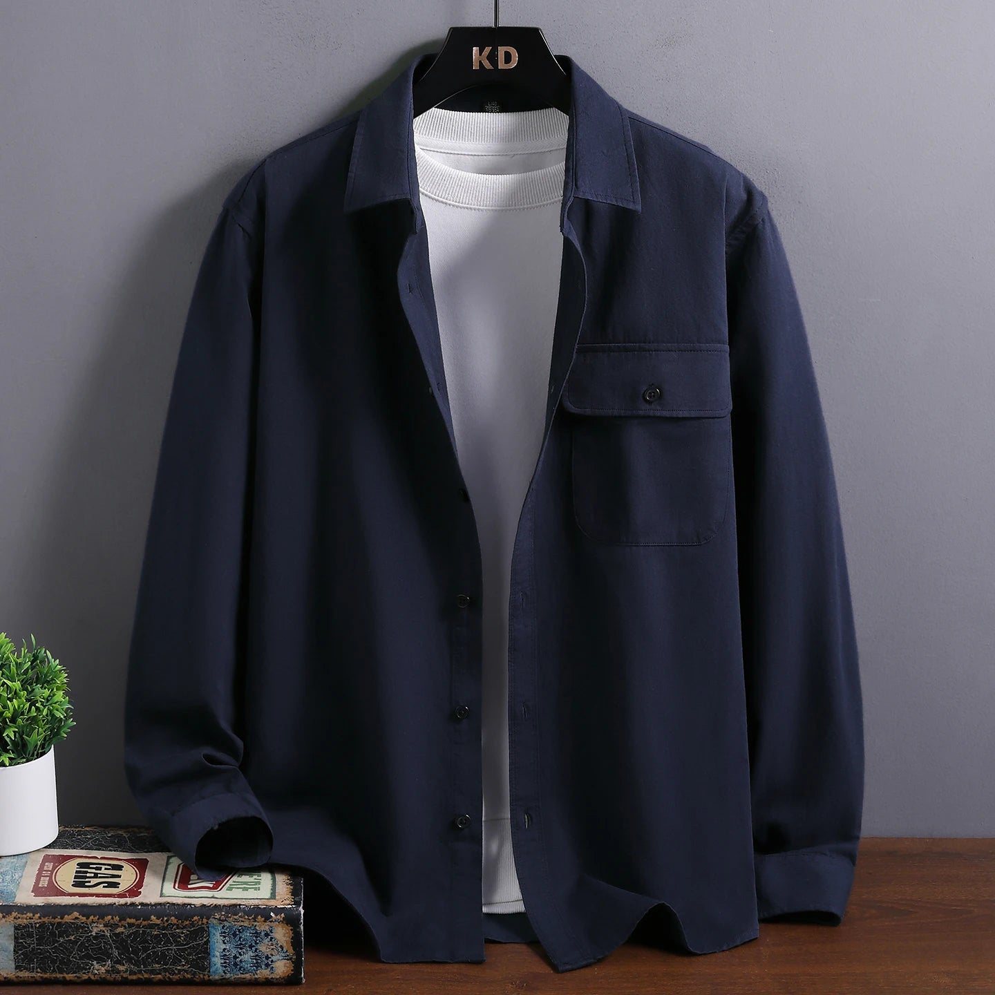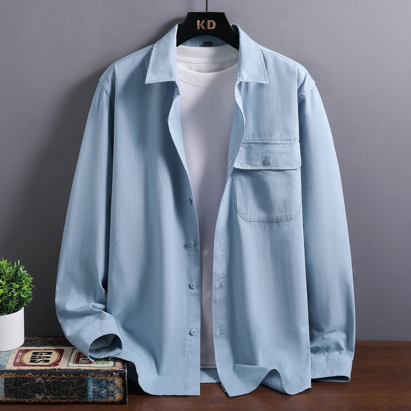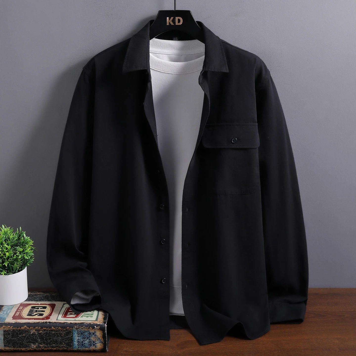 American men's fashionable, cool and versatile solid-color trendy casual shirt, new lapel long-sleeved top, simple and elegant