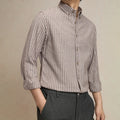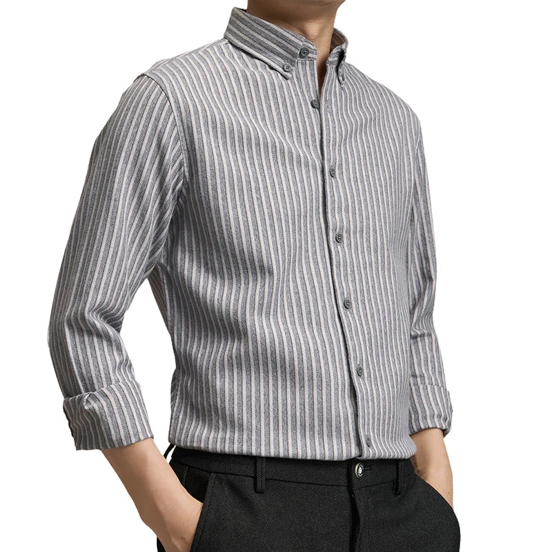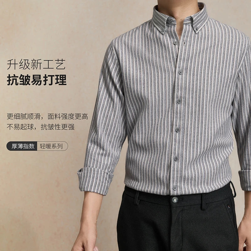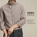 Autumn new high-quality, fashionable, stylish, versatile and casual striped double-sided brushed men's long-sleeved shirt