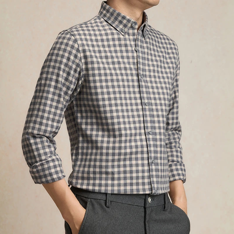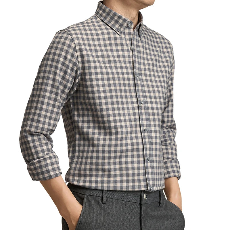 Autumn new light business fashion, cool and versatile, trendy men's long-sleeved shirt with double-sided brushed check