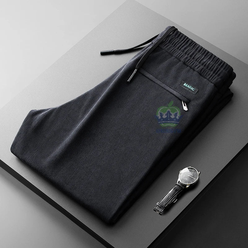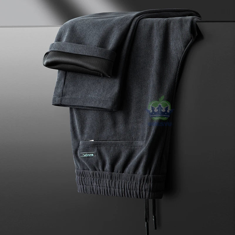 Autumn Winter Brown Classic Corduroy Casual Pants Men Elastic Waist Business Zipper Jogging Work Grey Thick Trousers Male M-4XL