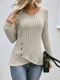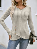 Autumn Winter Long-sleeved Round Neck Top Women's Fashion Casual Irregular Solid Color Street Style Buttons Pullover Tshirt New