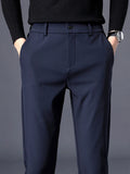 Autumn Winter Stretch Casual Pants Men Thick Business Stretch Slim Elastic Waist Jogger Korean Classic Outdoors Trousers Gift