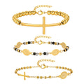 Beads Chain Virgin Mary Bracelet For Women, Stainles Steel Rosary Cross Bracelets, Gold Plated Faith Jewelry Gift