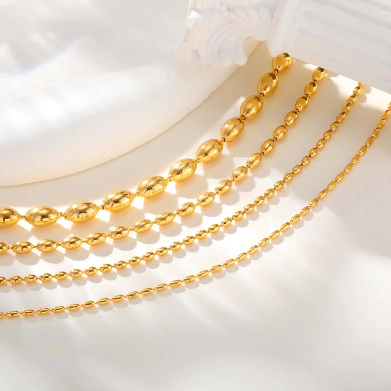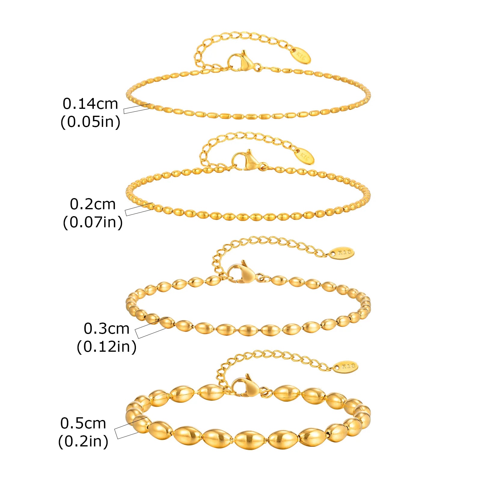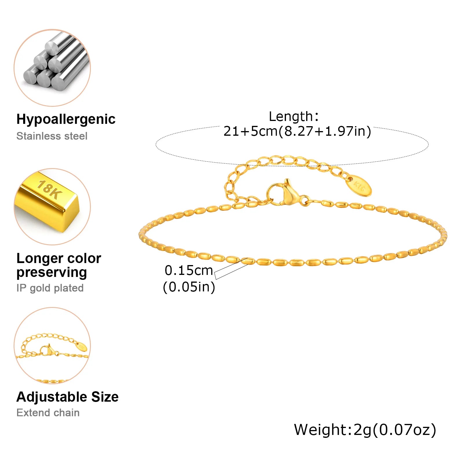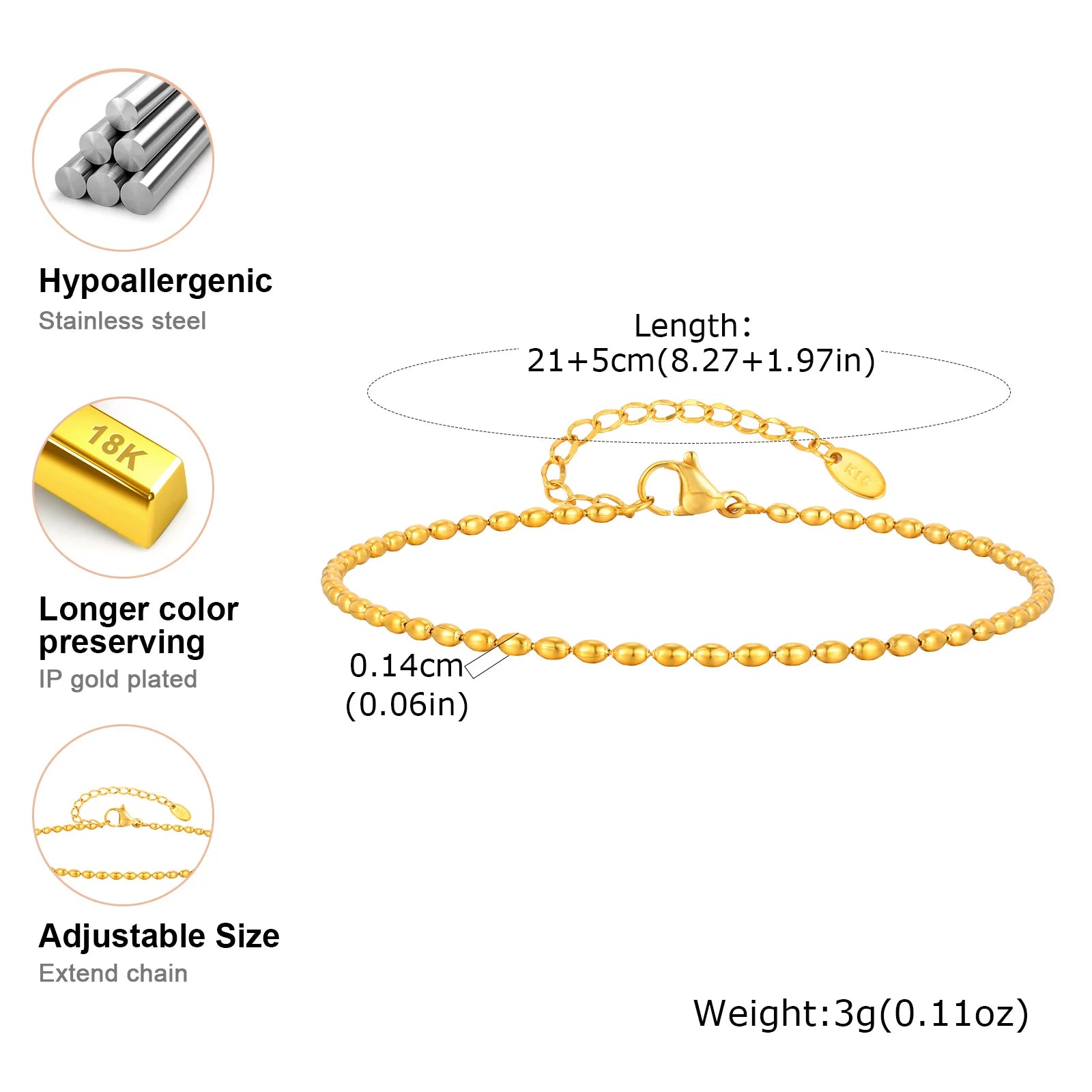 Beaed Ball Anklet Bracelet for Women, Waterproof Adjustable Link, 3mm 5mm Stainless Steel Stackable Gold Plated Anklet Jewelry