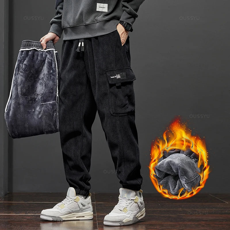 Brand Clothing New Winter Fleece Warm Corduroy Pants Men Cargo Work Thick Baggy Streetwear Joggers Trousers Male Large Size 5XL