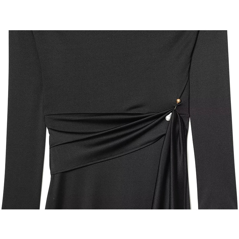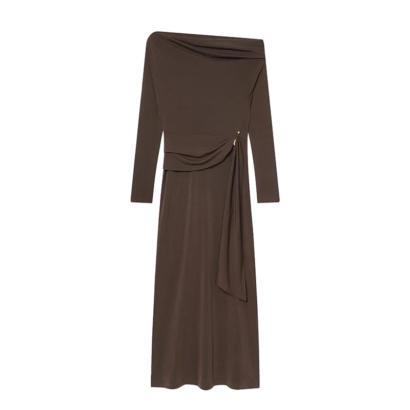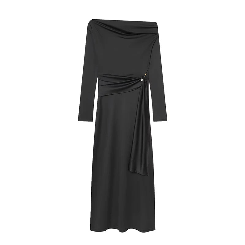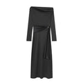 Chic Elegant Off Shoulder Long Dress Woman 2025 New Fashion Snap Button Ruched Midi Dresses For Women Slim Party Dresses