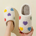 Cute Color Heart Women Slippers Valentine's Day Embroidery Fuzzy Romantic Love Comfy Flat Girl Friend Gift Winter Home Shoes