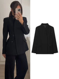 Fall New Women's Blazer Coat Fashion Slimming Leisure Pocket Jackets Top 2025 Elegant Chic Solid Female Commuter Clothing