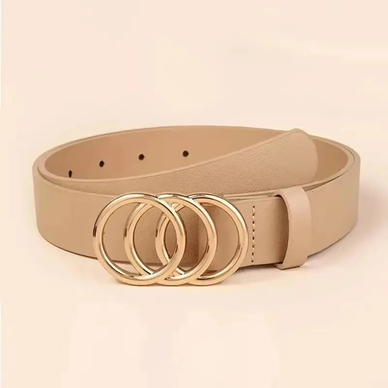 Fashion Women's Hollow Out Double Round Golden Buckle Belt Casual Jeans Waist Strap Women Accessory Designer Belt,For Ideal Gift