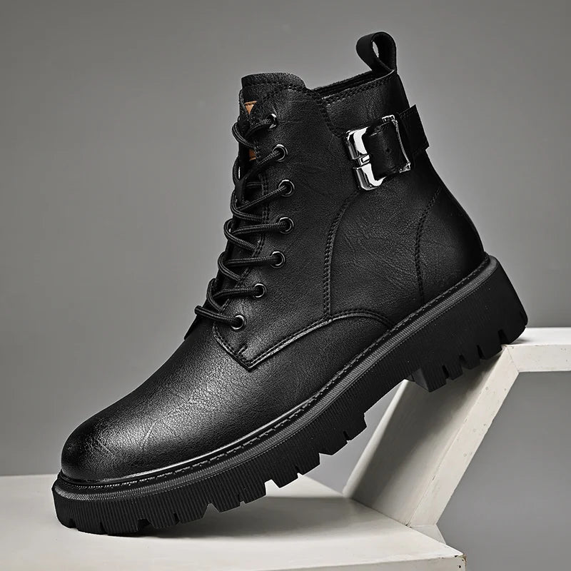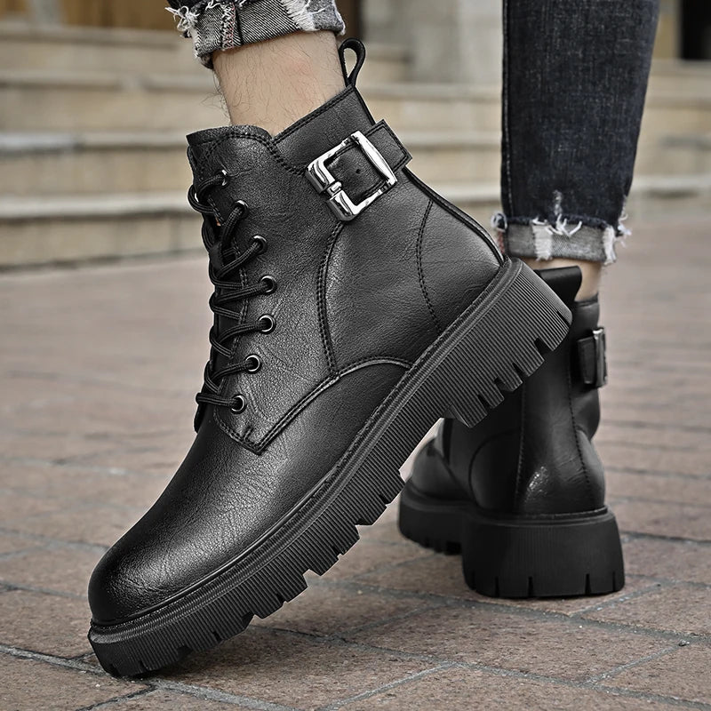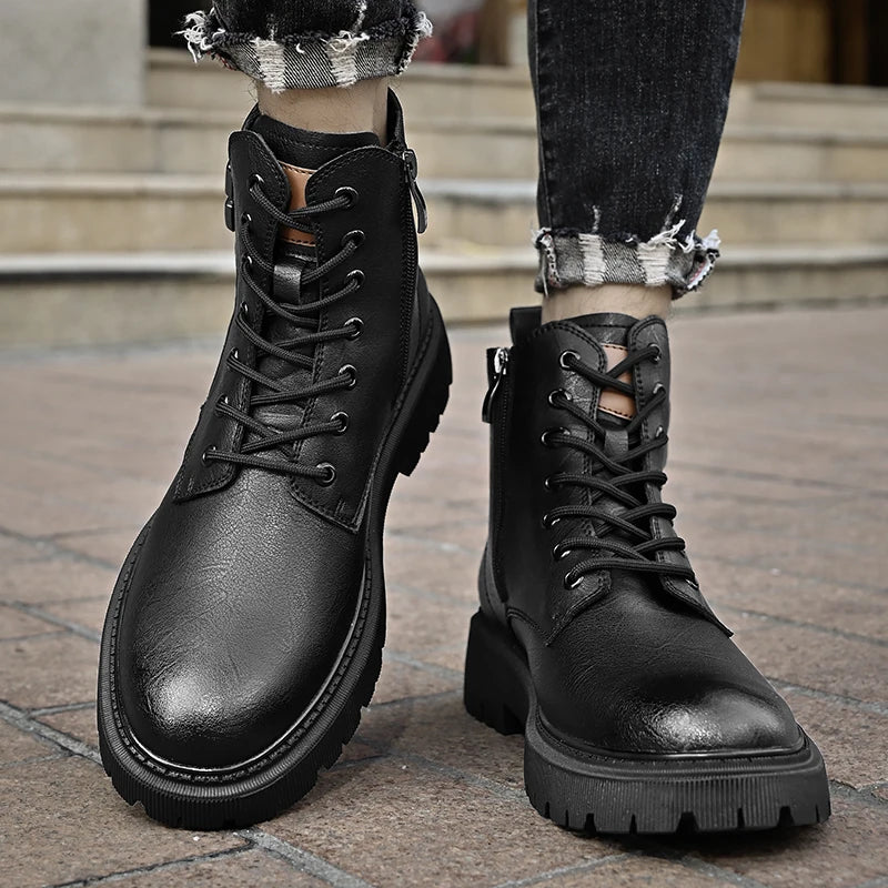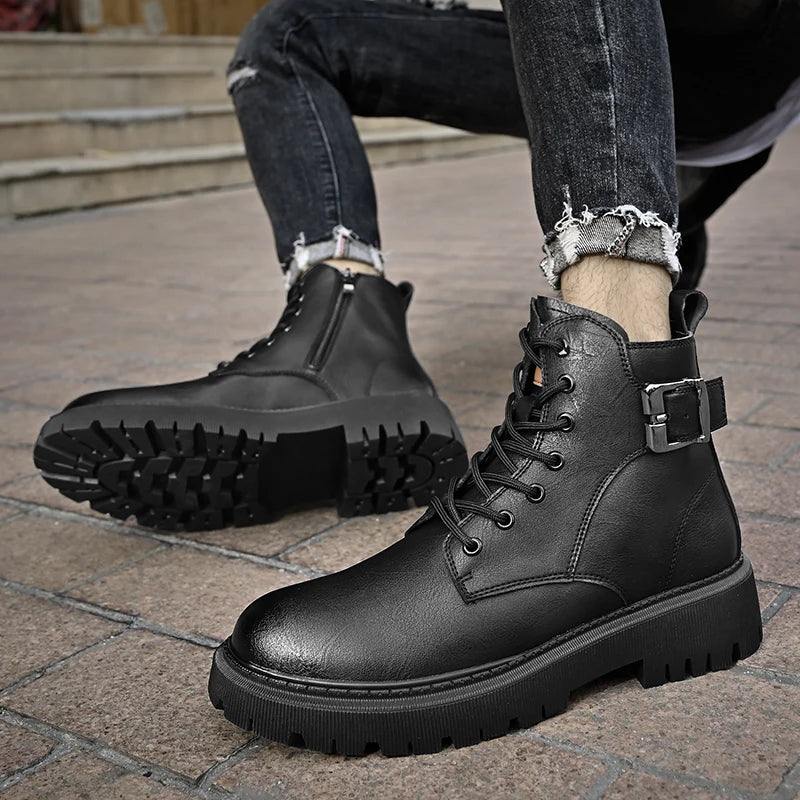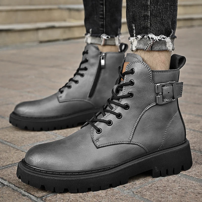 Genuine Leather Men's Motorcycle Boots Outdoor Leather Hiking Shoes Male All-match Short Boots Leisure Walk Ankle Boots Sneakers