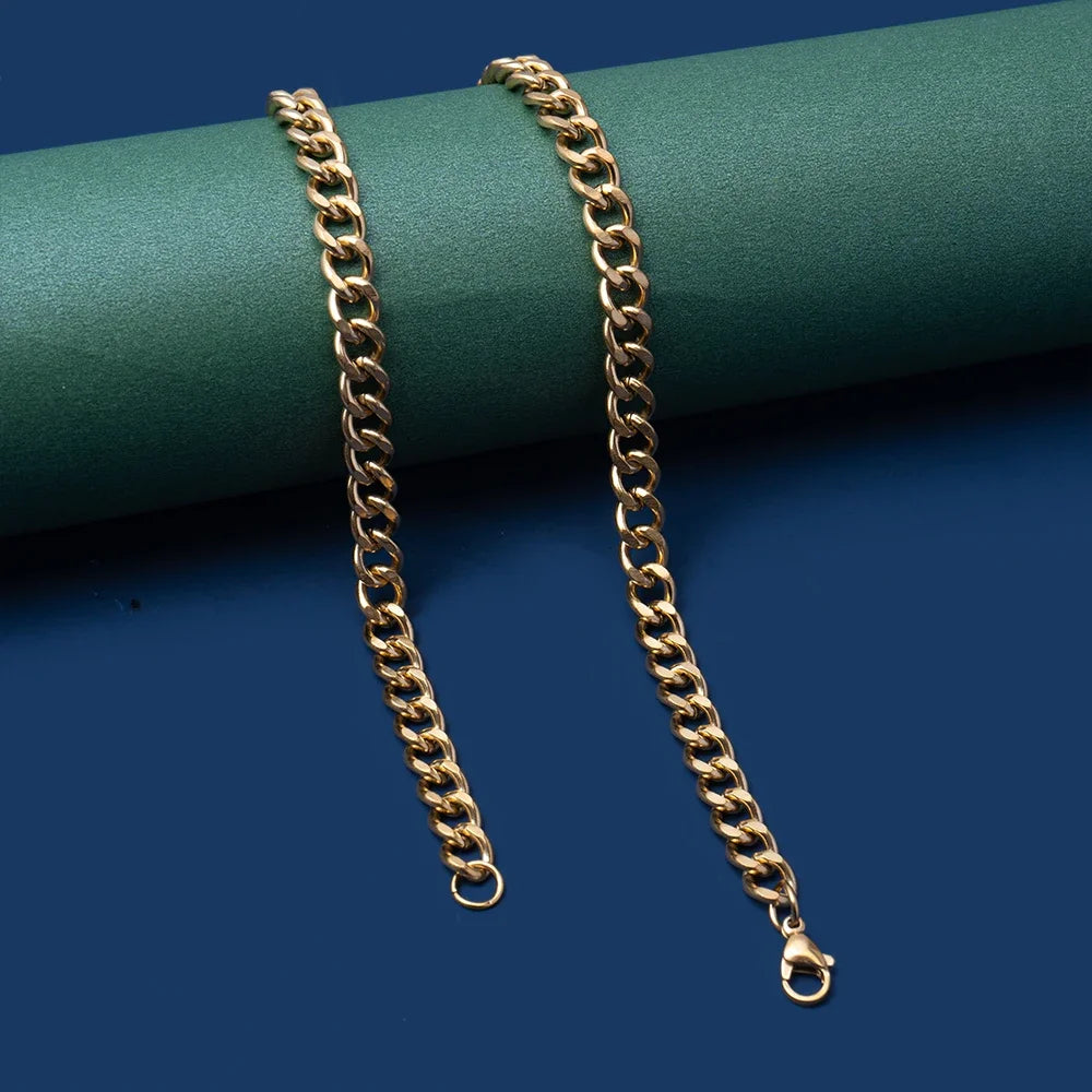Gold Color Cuban Chain Stainless Steel Men Necklace Simple Basic Chain Necklace For Women Hip Hop Jewelry Trendy Accessories