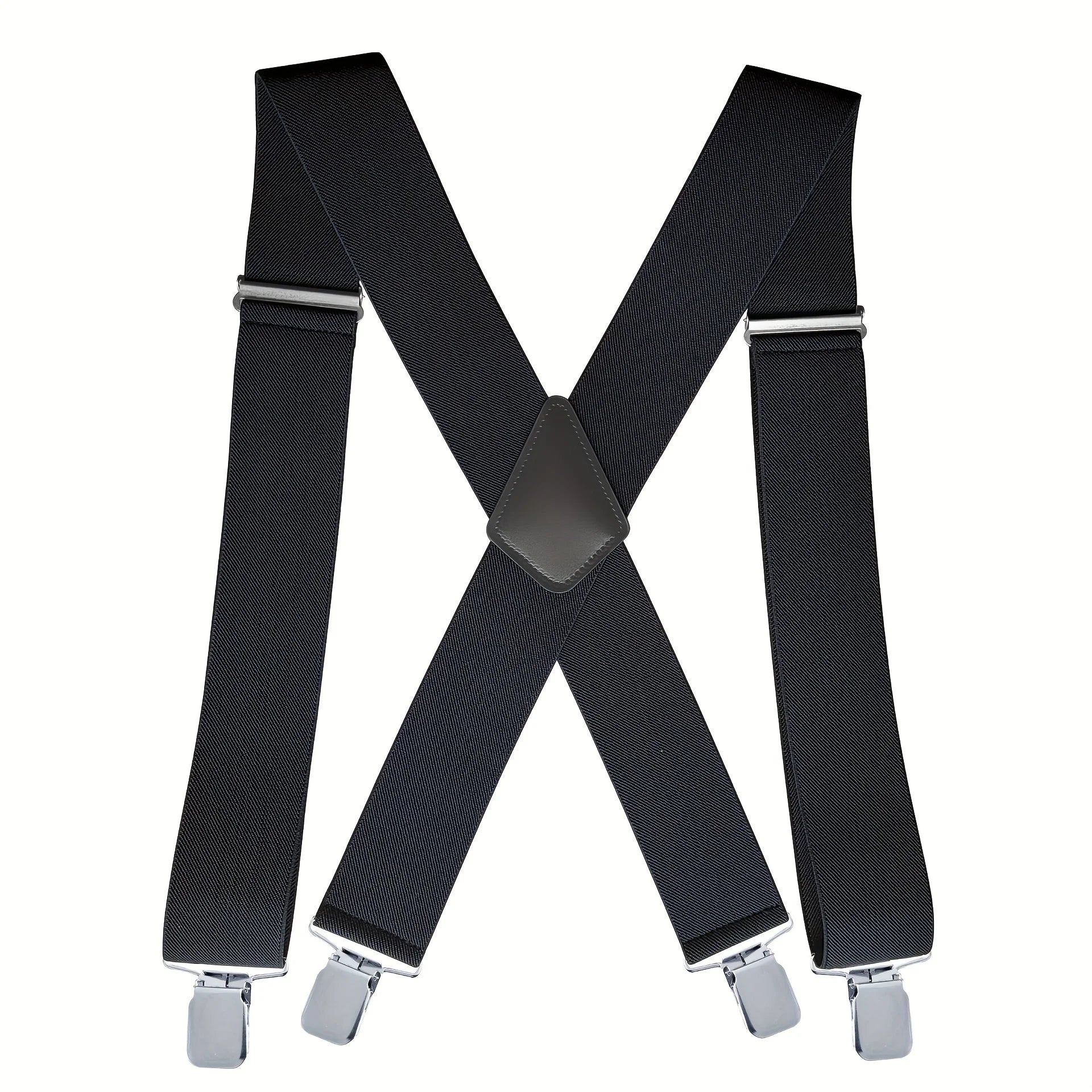 Heavy Duty Big Size Suspenders for Men Work Outdoor 2 Inch Wide X Back 4 Strong Clips Adjustable Elastic Trouser Braces Straps