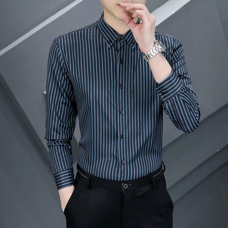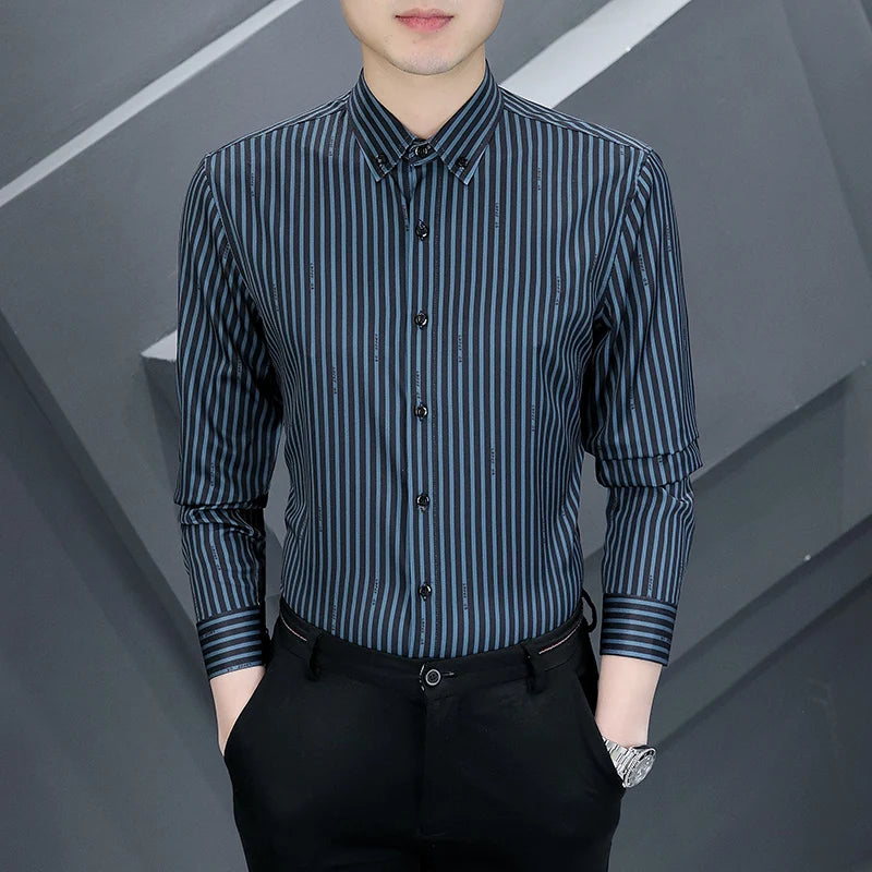 High-quality autumn new style, fashionable, stylish, versatile and trendy business casual striped long-sleeved shirt