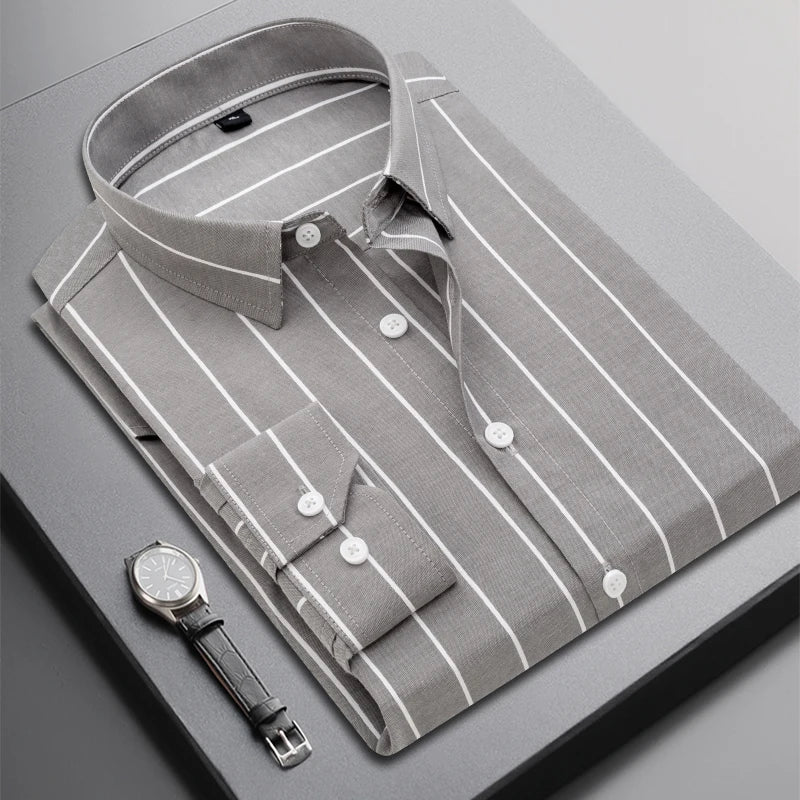 High-quality autumn young business men's fashionable, stylish, versatile and trendy long-sleeved striped shirt for casual banque
