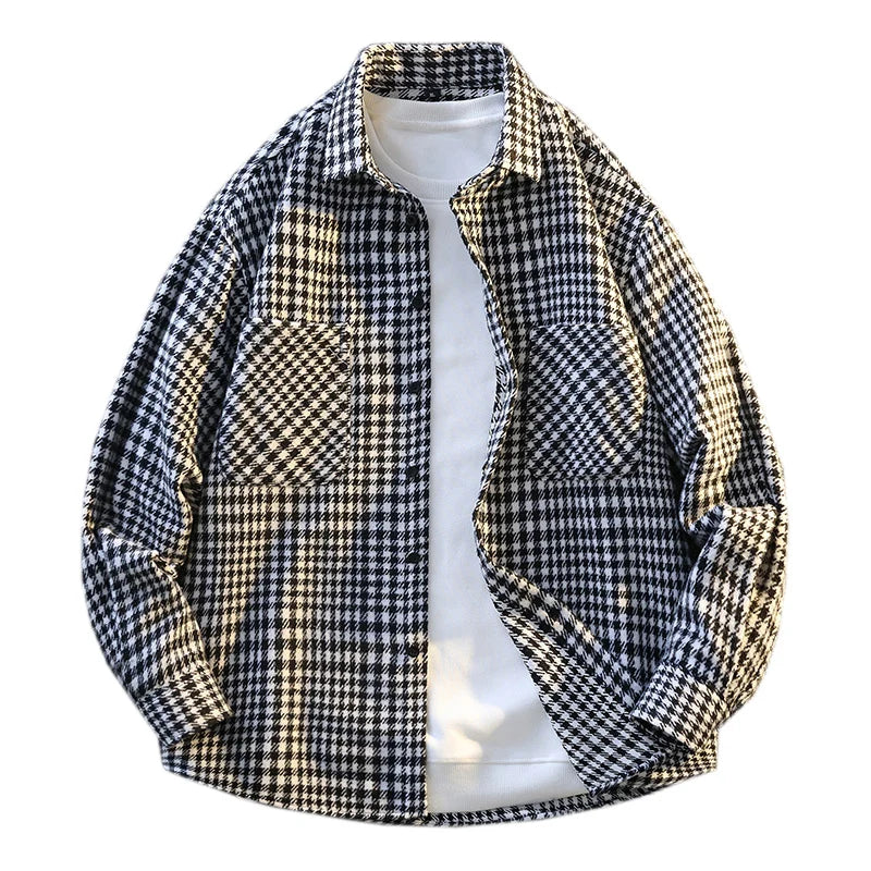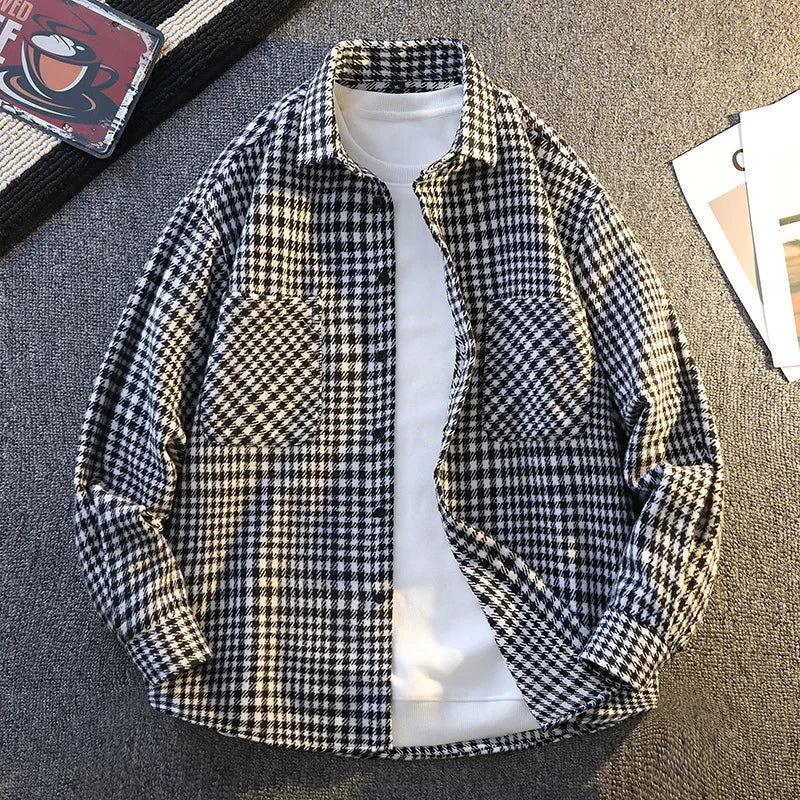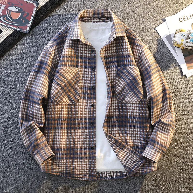 High-quality autumn youth fashion, cool and versatile, trendy and casual, frosted checkered shirt for men