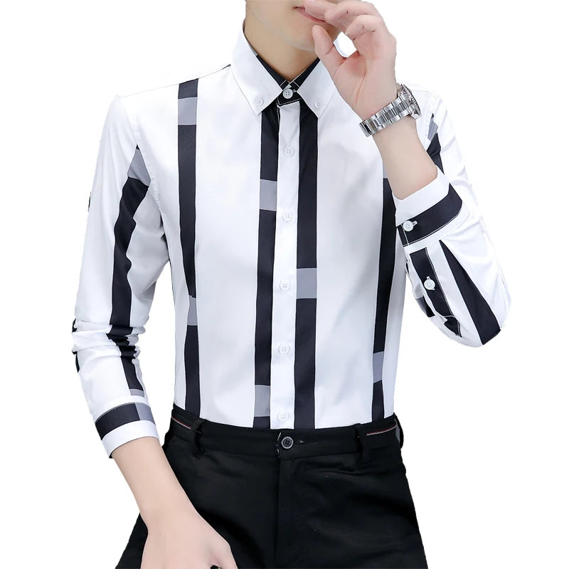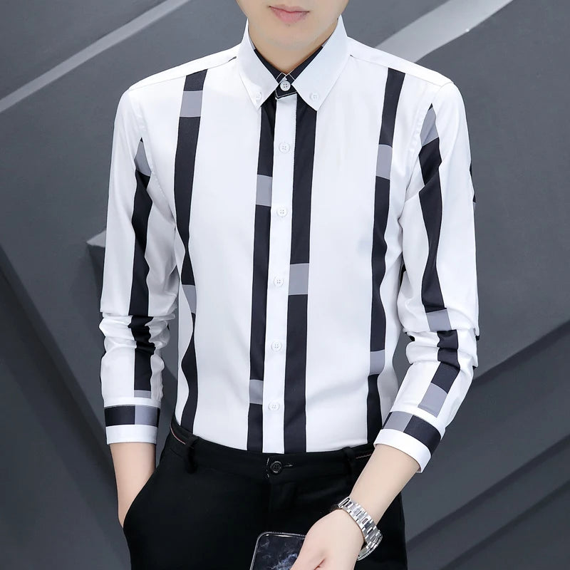 High-quality, fashionable, stylish, versatile and trendy casual business men's wide striped shirt for autumn