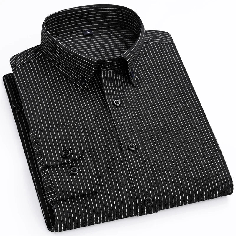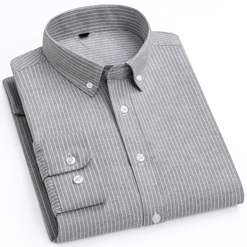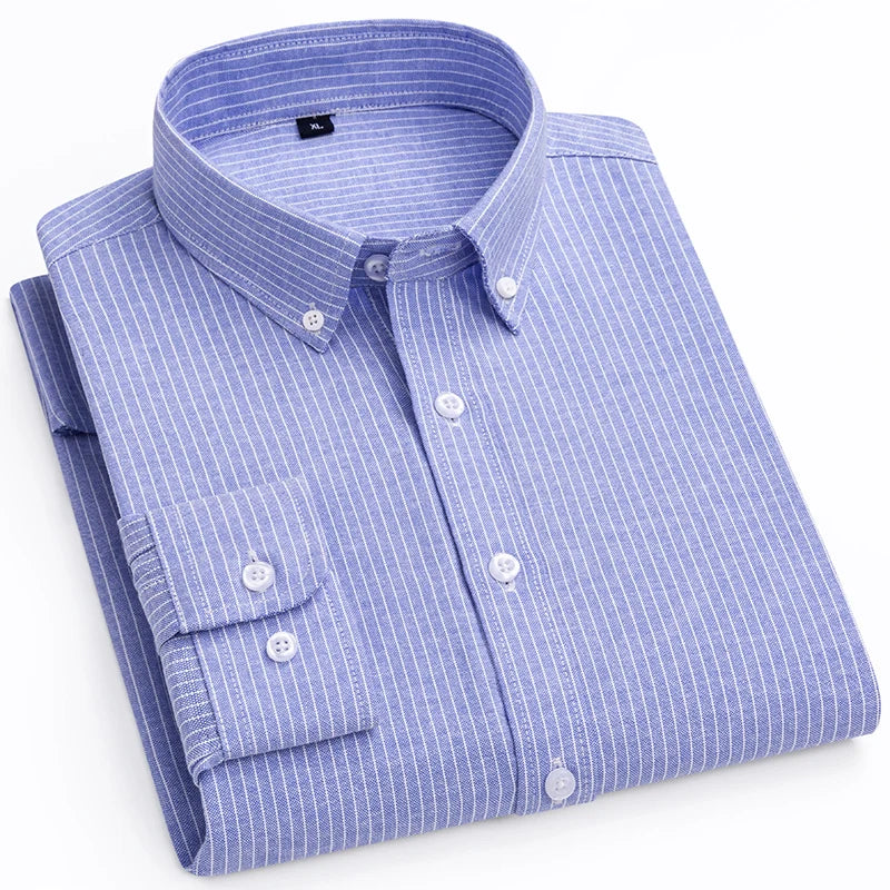 High-quality, fashionable, stylish, versatile, trendy and casual autumn business Oxford striped men's long-sleeved shirt