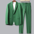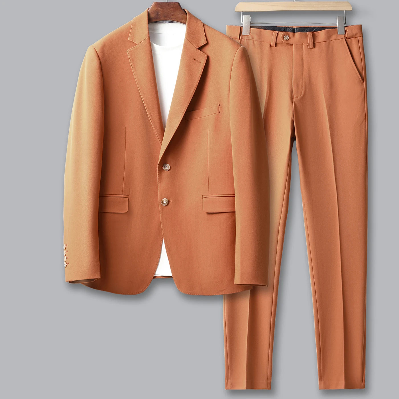 High-quality men's fashionable and stylish business suit solid color casual suit fitted suit set, two-piece outfit + pants