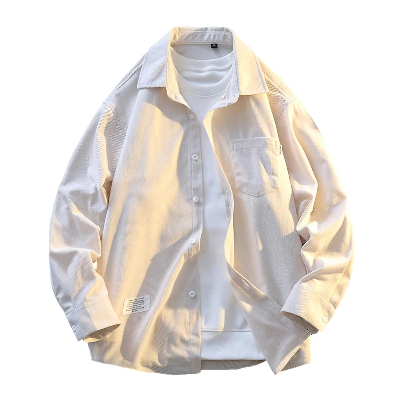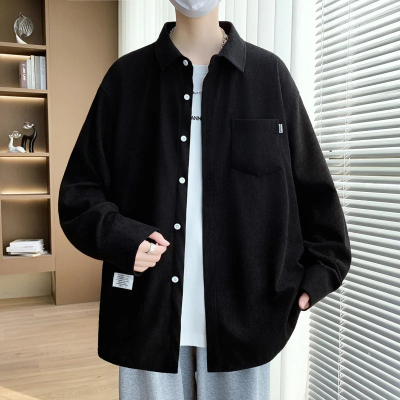 High-quality men's fashionable, stylish, versatile and trendy casual banquet corduroy solid-color long-sleeved shirt in autumn